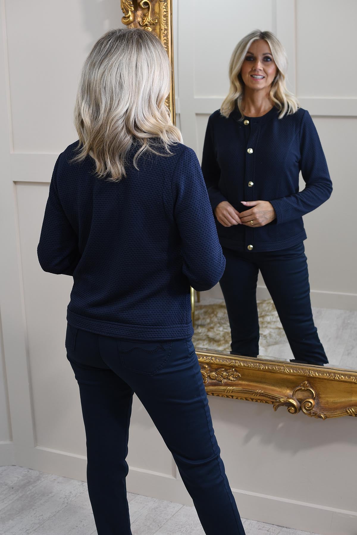 Barbara Lebek Navy Textured Relax Fit Blazer- 40020052