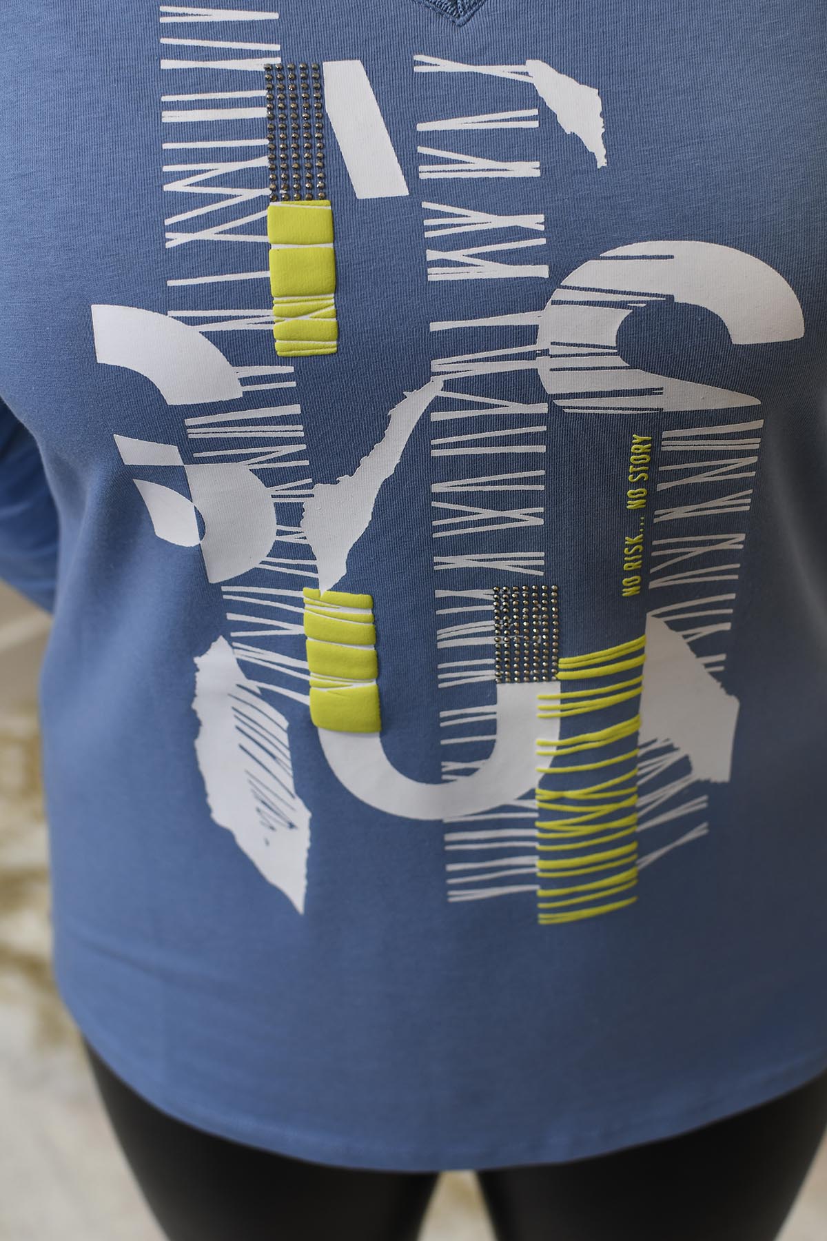 Barbara Lebek Slate Blue Top With Stone & Lime Graphic- 35120052