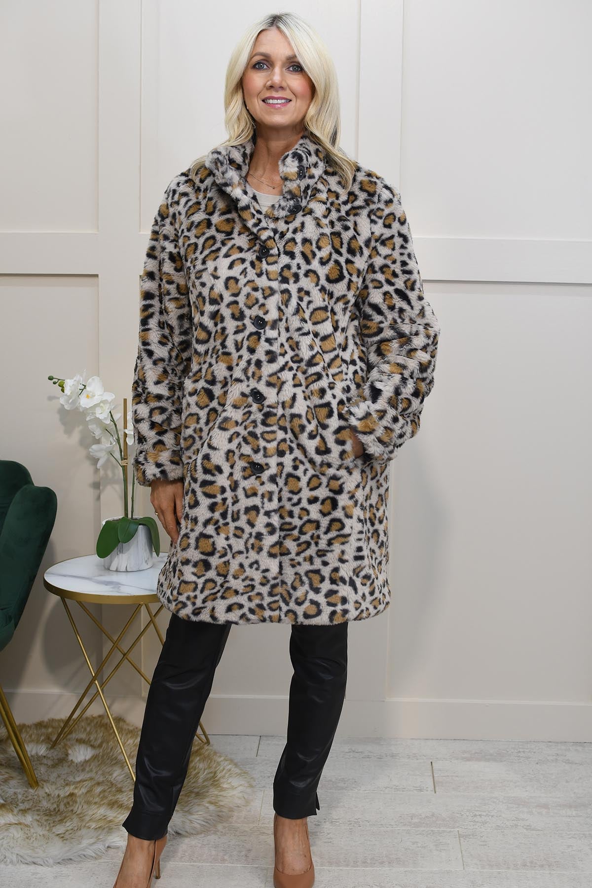 Betty Barclay Faux Fur Leopard Print Coat-4437/2902