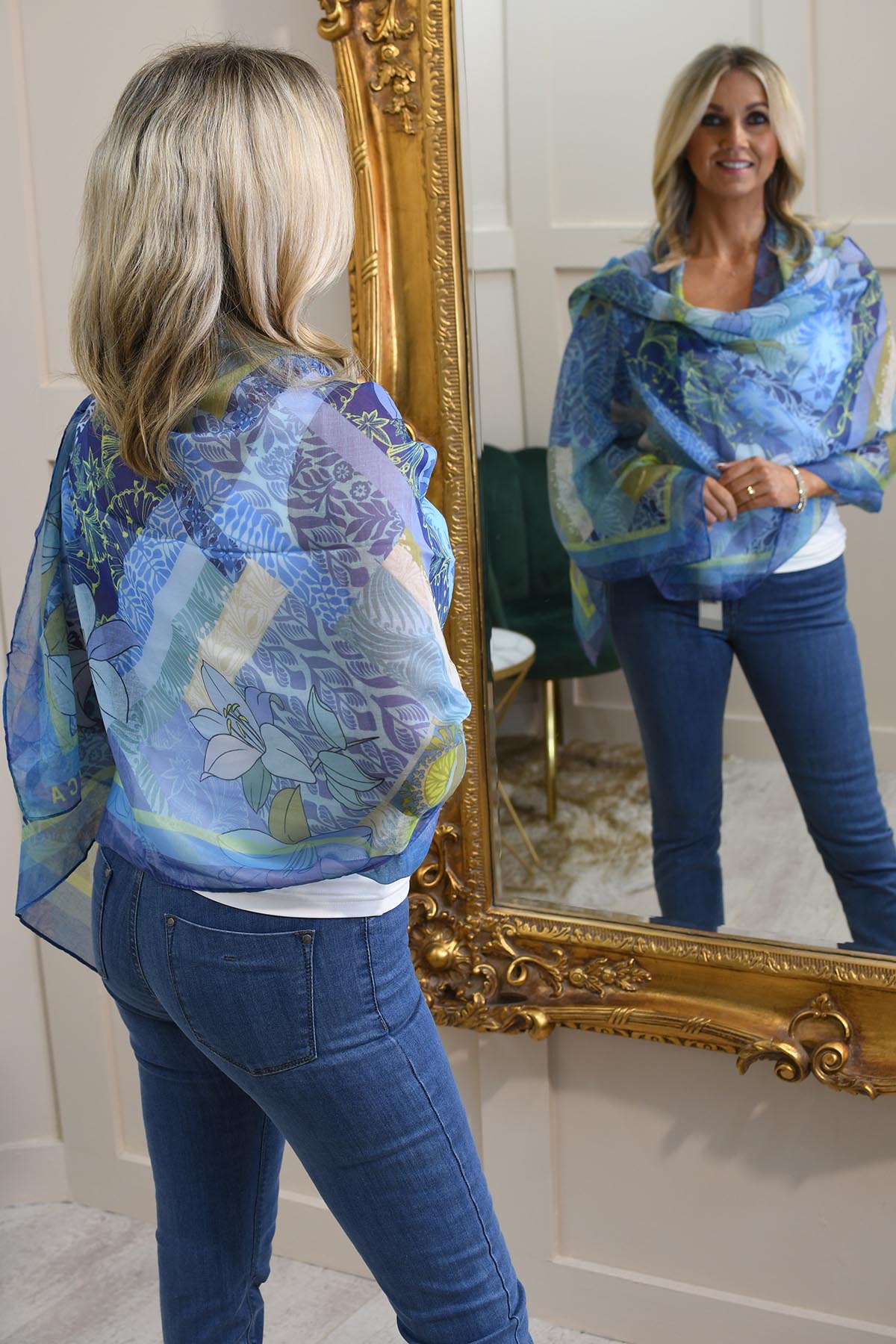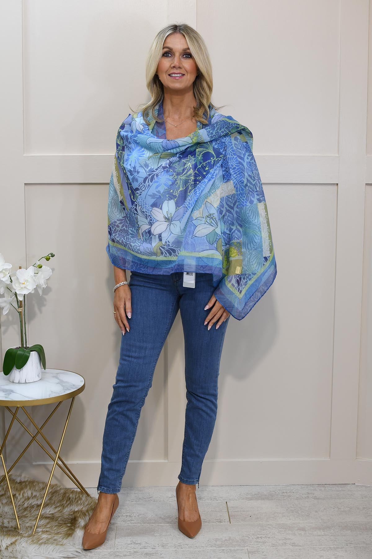 Add a touch of elegance to any outfit with the Bianca Multi-Tonal Blue & Green Floral Print Scarf. Made from 100% lightweight polyester, this versatile floral fashion scarf is part of our Easy Breeze Collection, designed to bring comfort and colour to your everyday style. The multi-tonal blue and green floral print creates a fresh, eye-catching accent that complements casual and dressy looks alike. Whether draped, tied, or wrapped, this scarf adds a chic finishing touch to your outfit while being soft, breathable, and easy to care for—perfect for women’s accessories and layering.