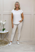 Barbara Lebek Off White Top With Cap Sleeve & Pleat Detail - 85660052
