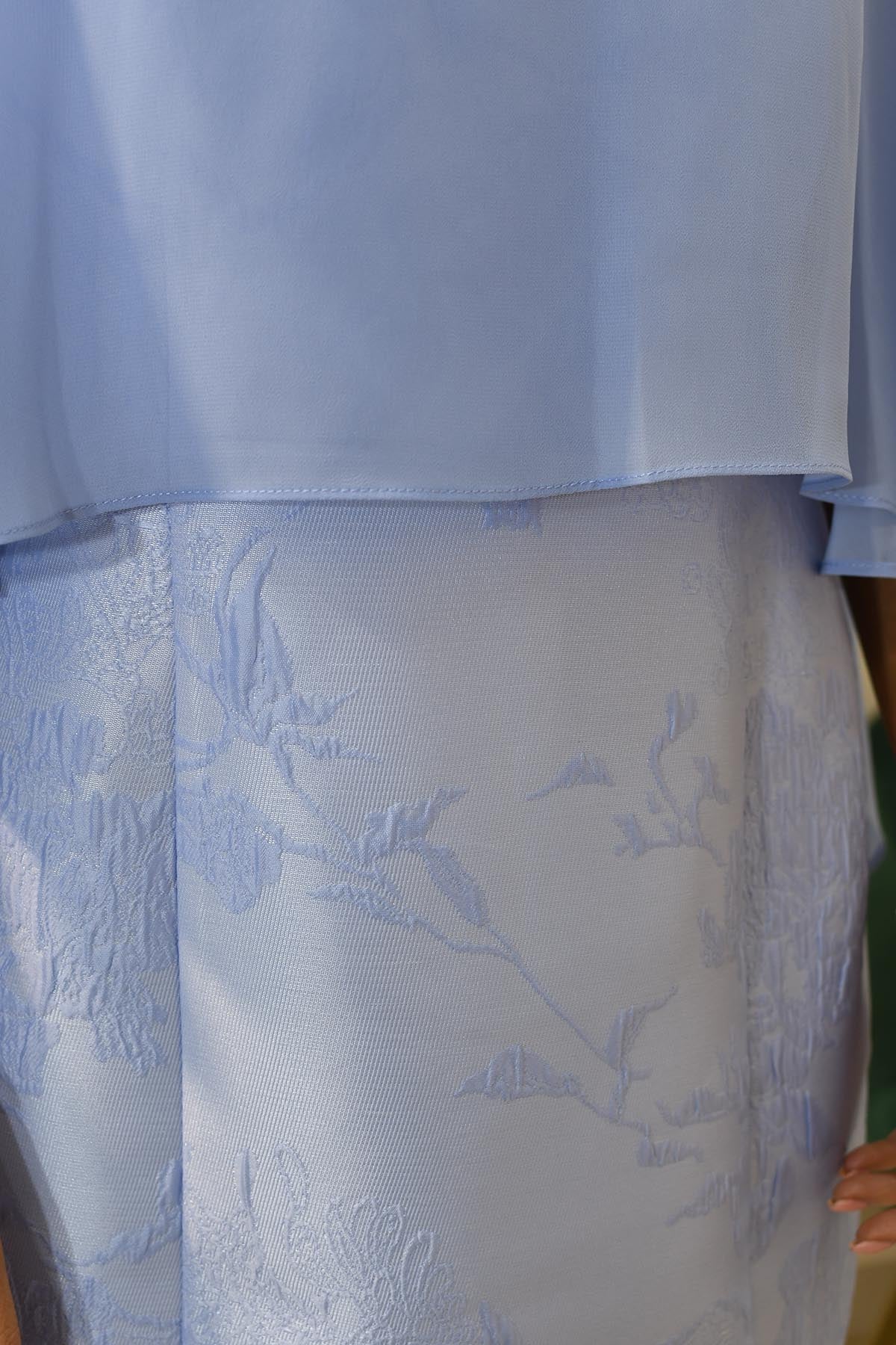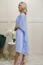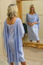 Lizabella Powder Blue Embroidered Dress With Sheer Waterfall Overlay-L-25SS-2127-36