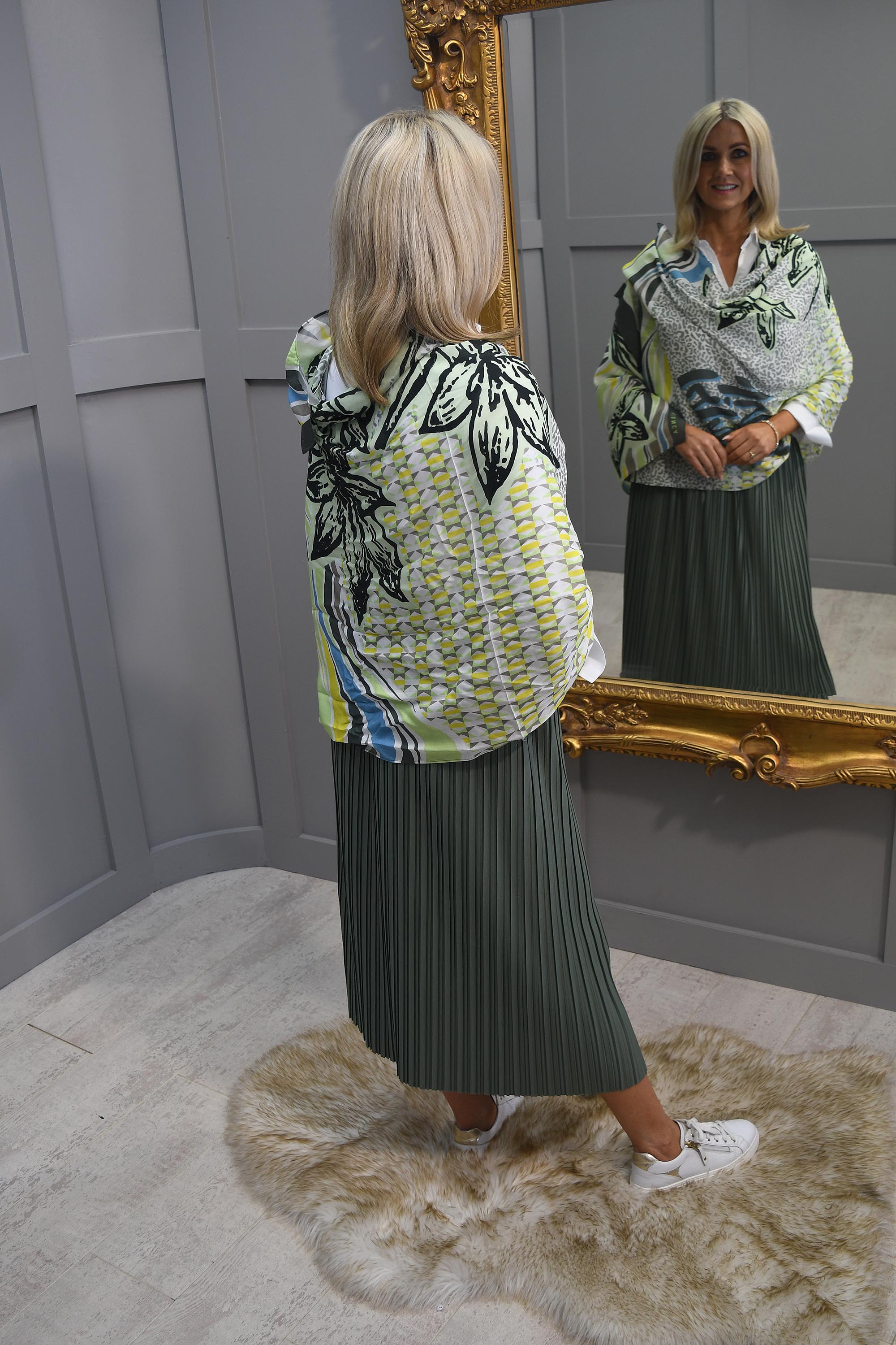Our Model Rhonda wears size 10 & is 5ft 6”.