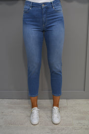 These versatile jeans from CRO are truly magic! The Magic Fit Skinny Crops Blue 7/8 Length are designed with a figure-flattering high waistline, dual button and zip-up front, five pockets and straight legs which crop just below the knee. These classic blue denim jeans are incredibly comfortable and are the perfect casual pant for summer.