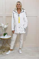 The Barbara Lebek White & Light Green Stripe Weather Protection Coat (70310052 636) is a stylish and practical outerwear essential, designed to keep you protected in all weather conditions. Featuring a lightweight yet durable fabric (100% POLYESTER), this coat offers excellent weather resistance without compromising on comfort. The white and light green stripe design adds a fresh, modern touch, while the adjustable hood and zip-front closure provide enhanced protection against the elements. With a flattering fit and versatile style, this coat is perfect for layering over any outfit, making it a must-have for transitional seasons.
