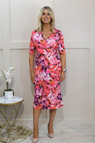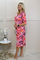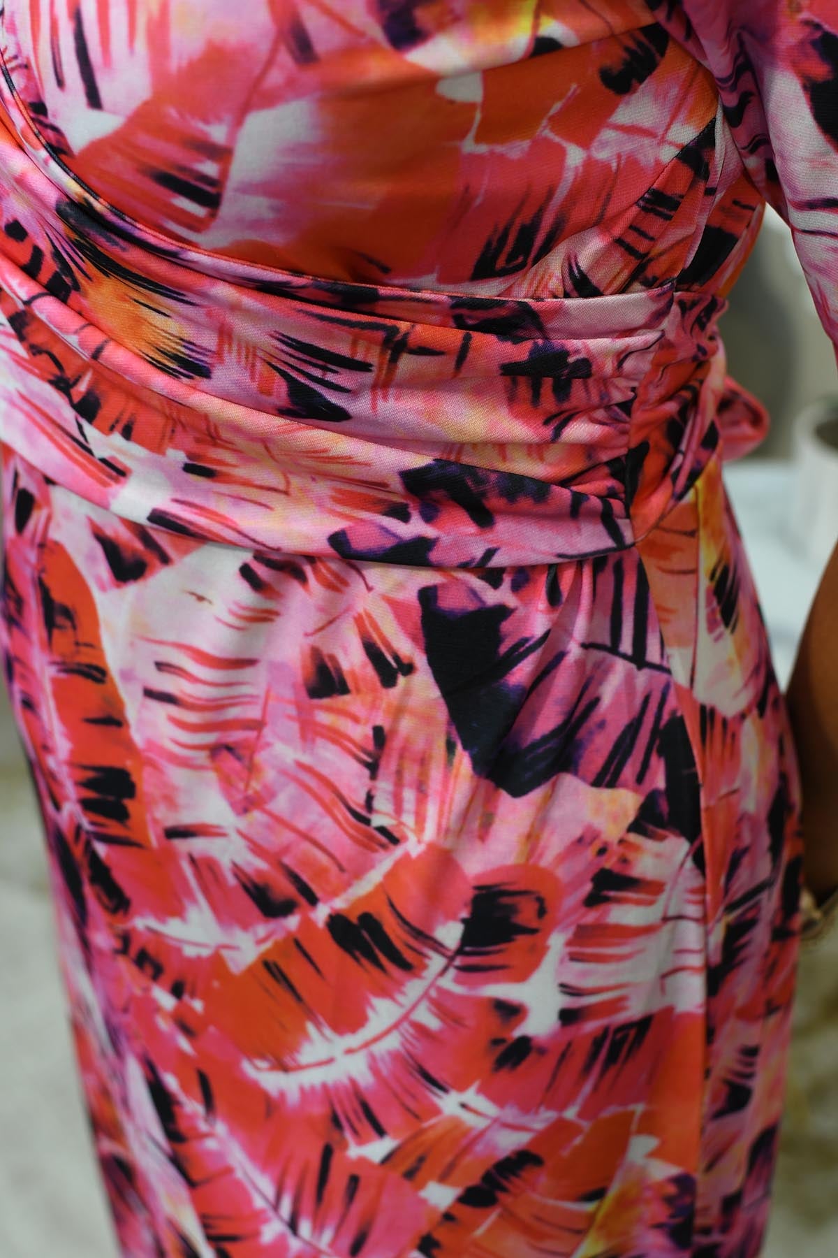 Beloved Multi-Tonal Pink Palm Print Wrap Dress-BS25-201
