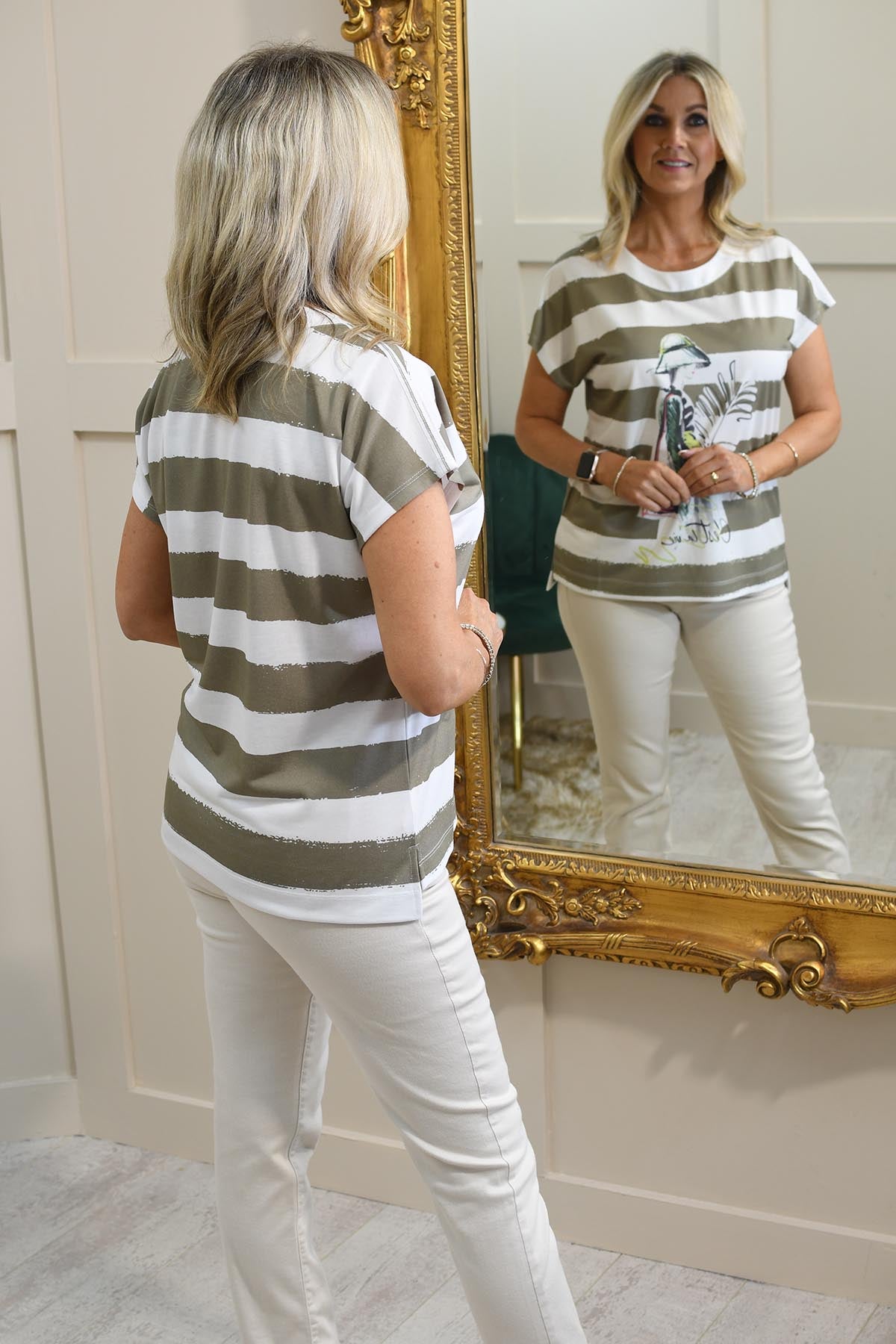 Bianca Khaki & White Stripe Cap Sleeve Top- 56337 51 599 Julie