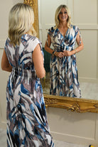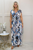 Elena Z Teal & Taupe Magic Fit Maxi Dress With Ruched Shoulder Detail-023-62