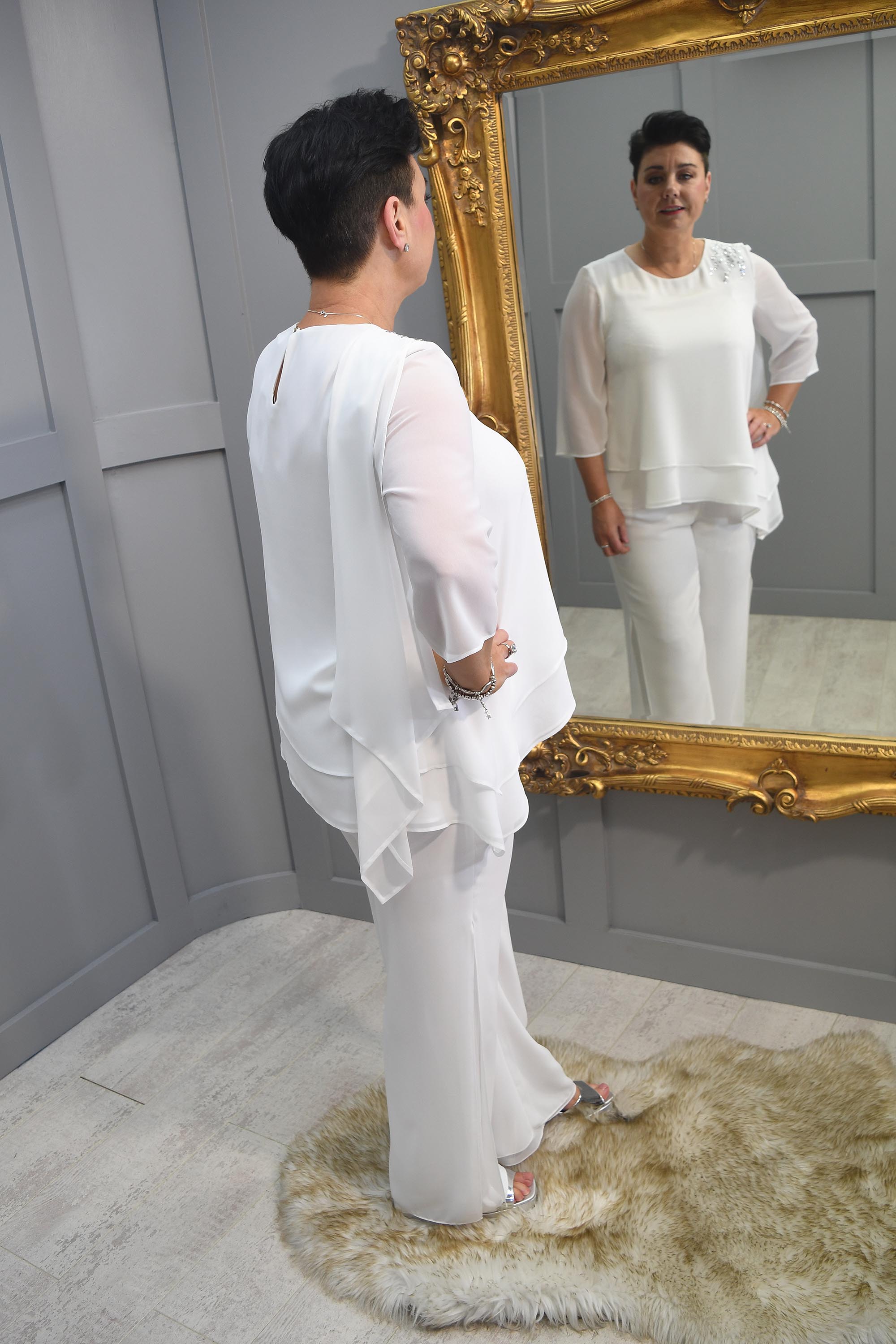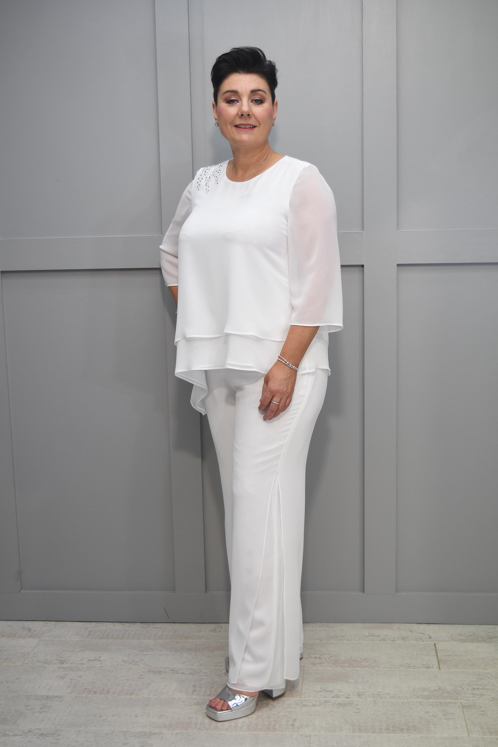 Crafted in a pristine white hue, reminiscent of purity and grace, this trouser suit is a versatile addition to any wardrobe. Whether for a wedding, a formal event, or a chic evening affair, the pristine white colour exudes sophistication and charm, making it an ideal choice for a variety of occasions.