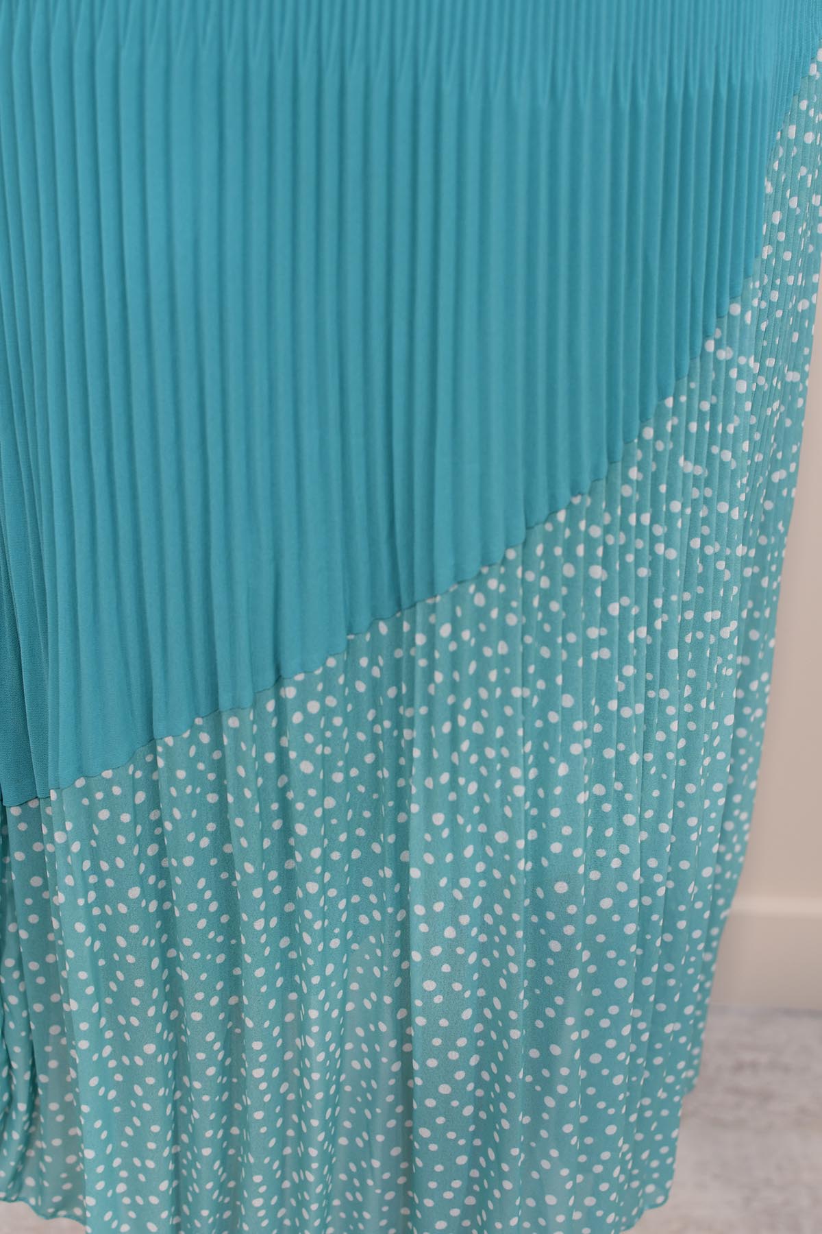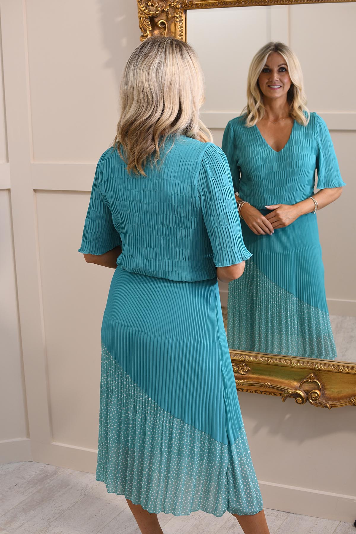 Kyla Jade Green Plisse Dress With Asymmetric Polka Dot Skirt - 7173