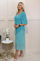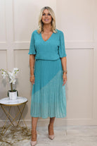 Elevate your wardrobe with the Kyla Jade Green Plissé Dress with Asymmetric Polka Dot Skirt. Crafted from a soft, stretchy blend of 95% viscose and 5% elastane, this dress combines comfort and elegance effortlessly. The vibrant jade hue adds a playful touch, while the plissé texture enhances the silhouette. A standout asymmetric skirt with bold polka dot print offers a trendy, fashion-forward look, making it perfect for both casual and special occasions. This versatile statement piece flatters all body types and transitions seamlessly from day to night. Ideal for summer events, brunches, or garden parties.