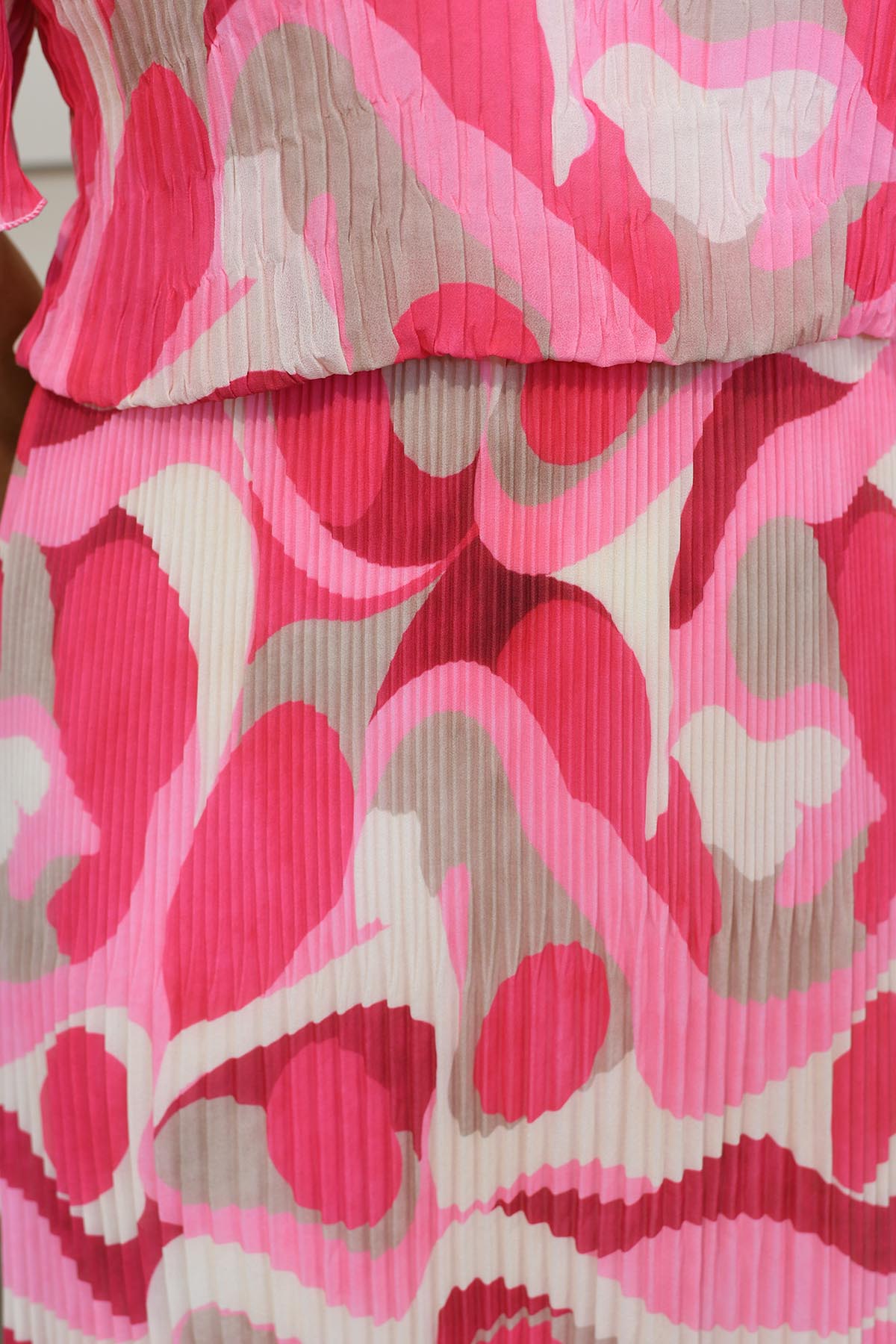 Kyla Pink, Beige & Cream Print Plisse Dress - 6747