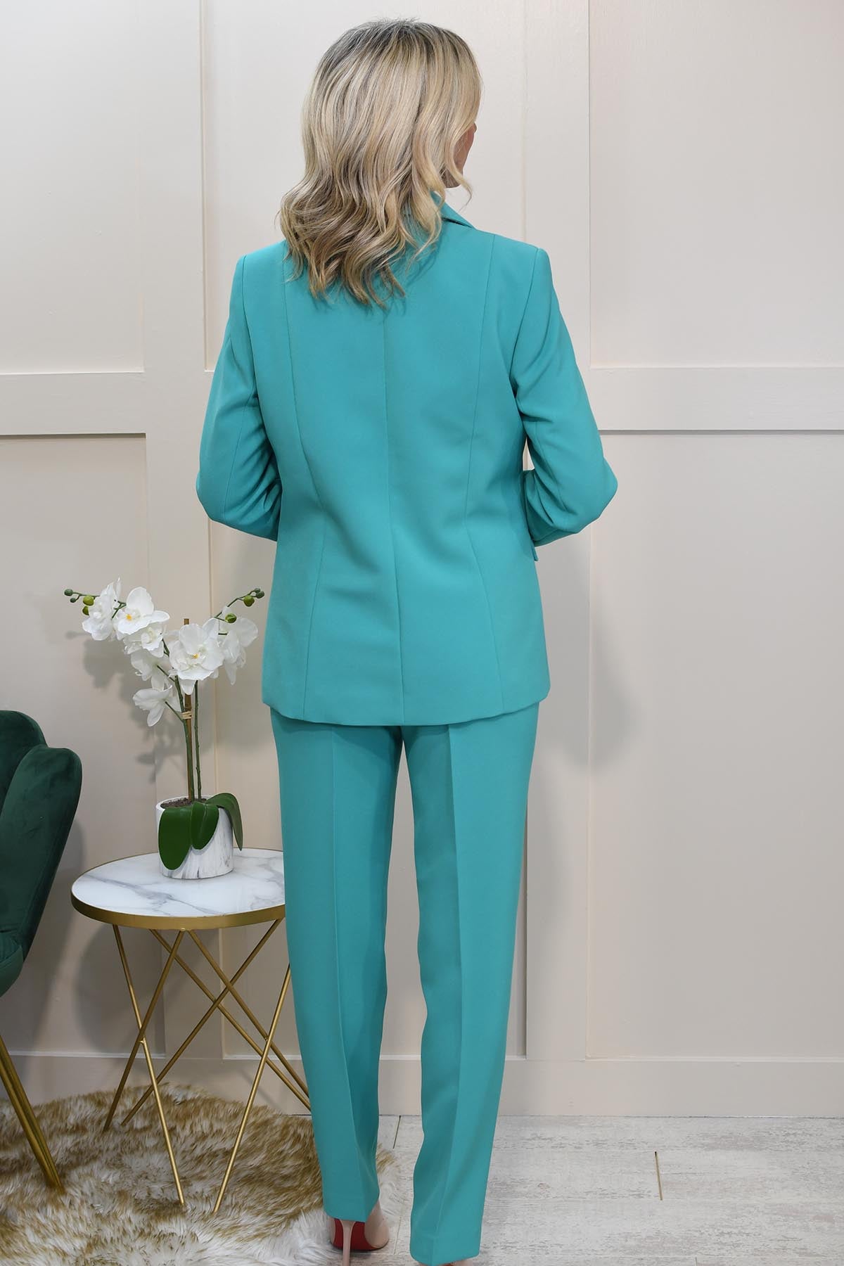 The Via Veneto Jade Green Blazer With Silver Button Detail – V312 Dolores is a timeless statement piece for effortless elegance. Tailored to perfection, this structured blazer features a classic Green hue, making it a versatile addition to any wardrobe. The sleek silver button detailing adds a refined touch, while the premium fabric ensures a comfortable and flattering fit. Ideal for both formal occasions and workwear, this blazer pairs beautifully with trousers or a pencil skirt for a polished ensemble. Style it with the matching Via Veneto Jade Green Suit Trousers for a sophisticated power look.