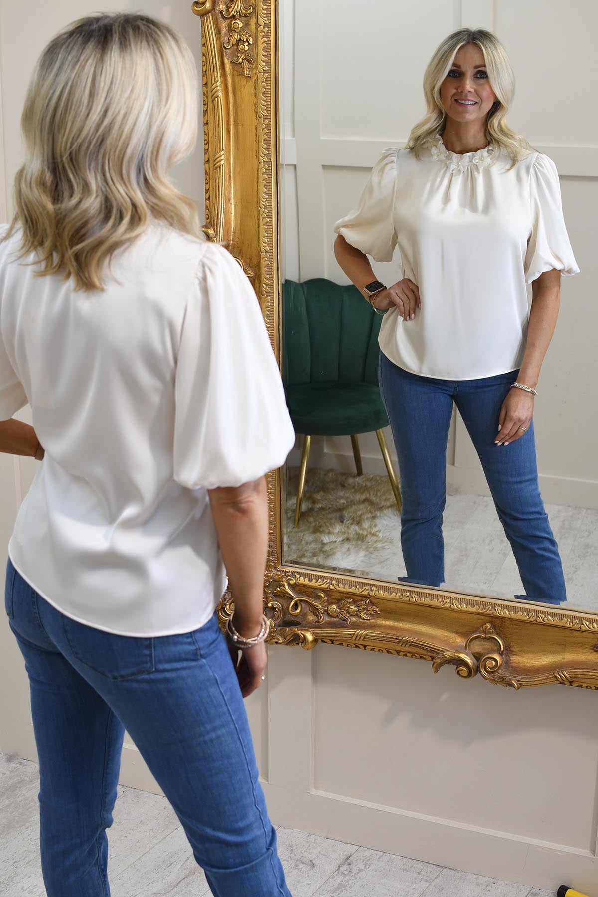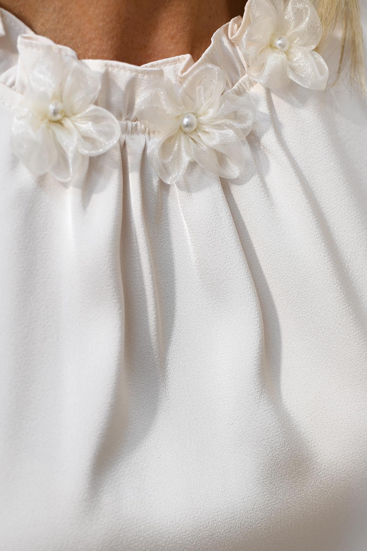Elli White Beige Blouse With Floral Neckline-24501YT