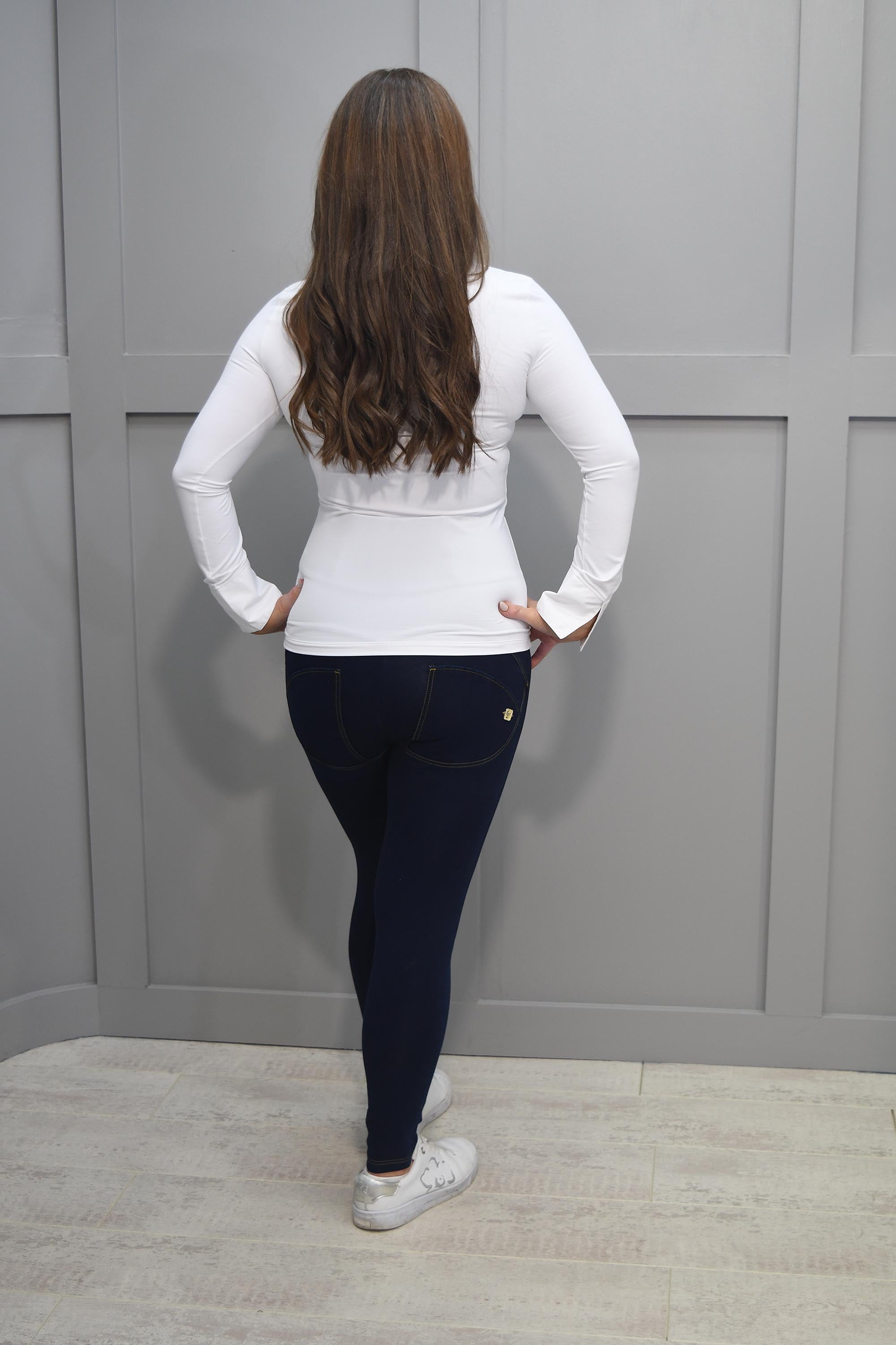 Our Model Rhonda wears size 10 & is 5ft 6”.