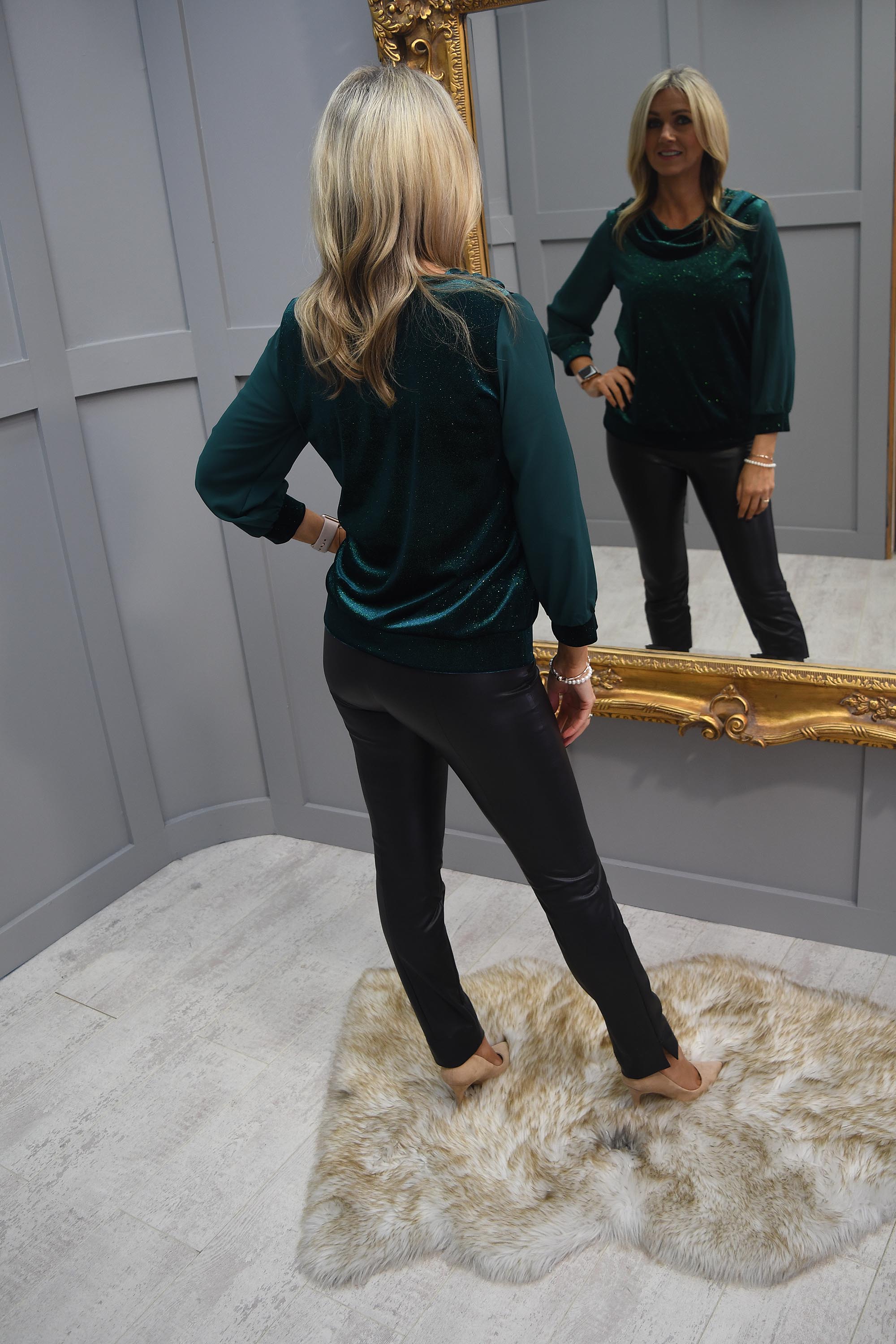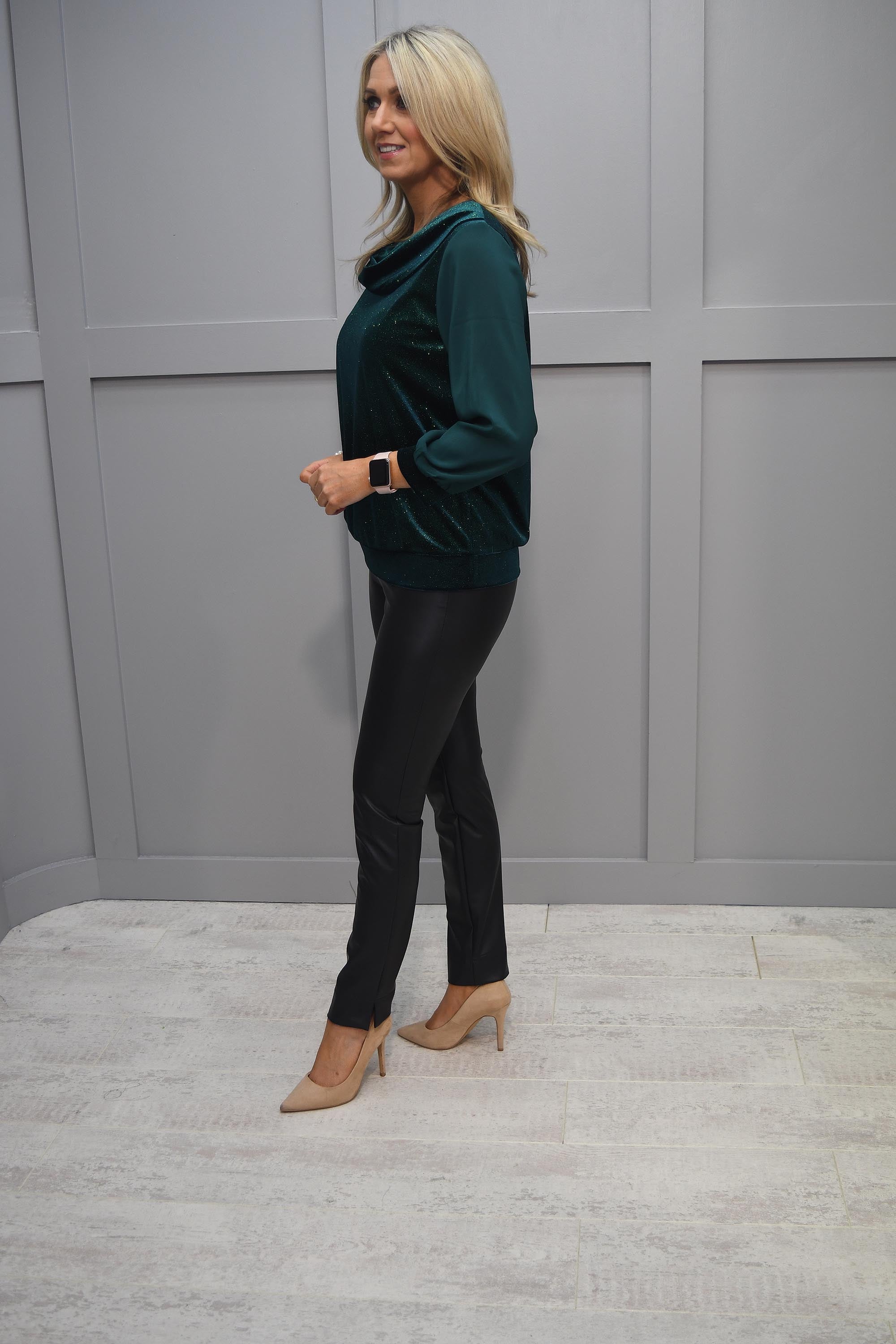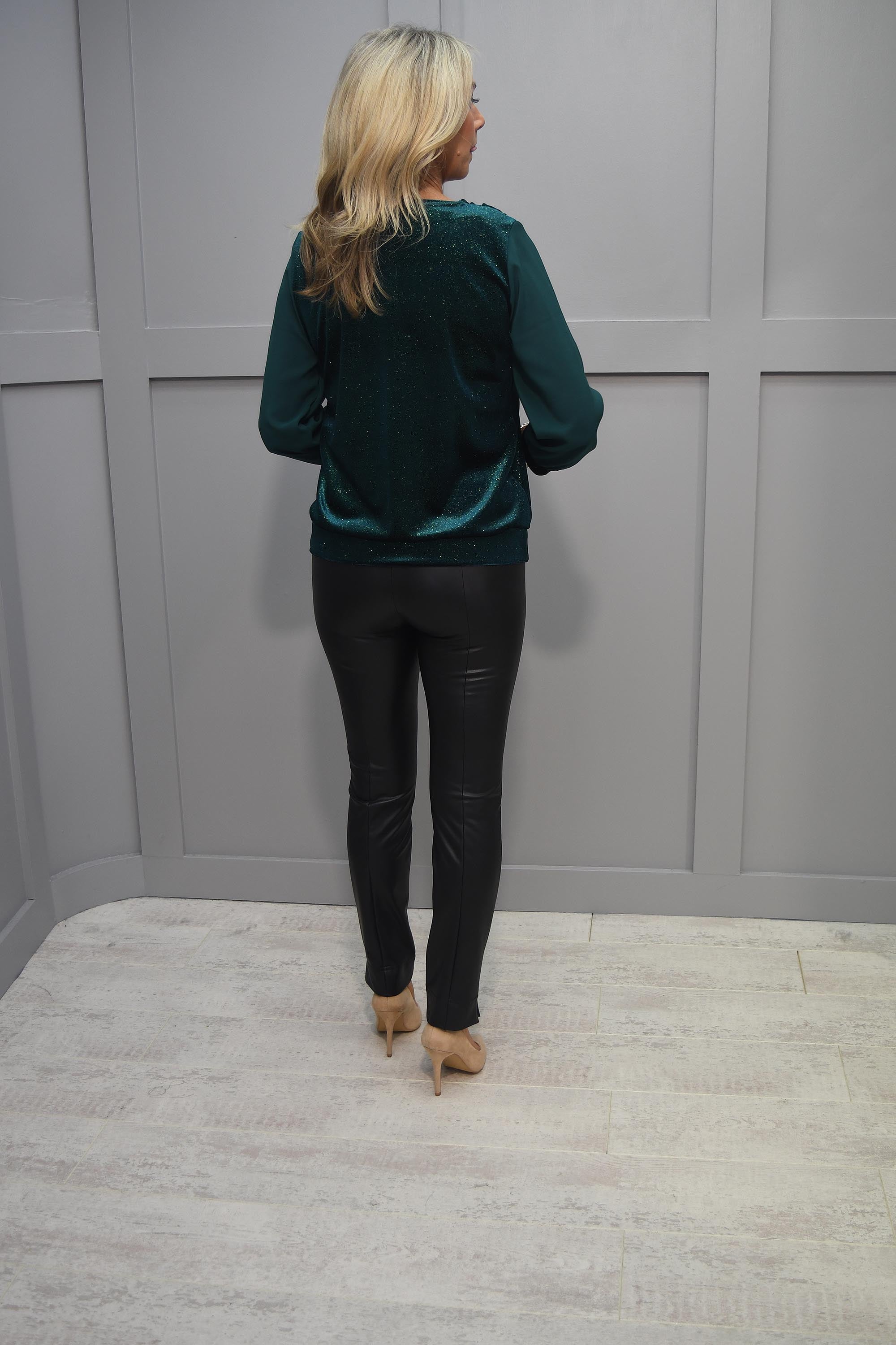 YEW Forest Green Sparkle Cowl Neck Long Sleeve Top - 2647 Saskia