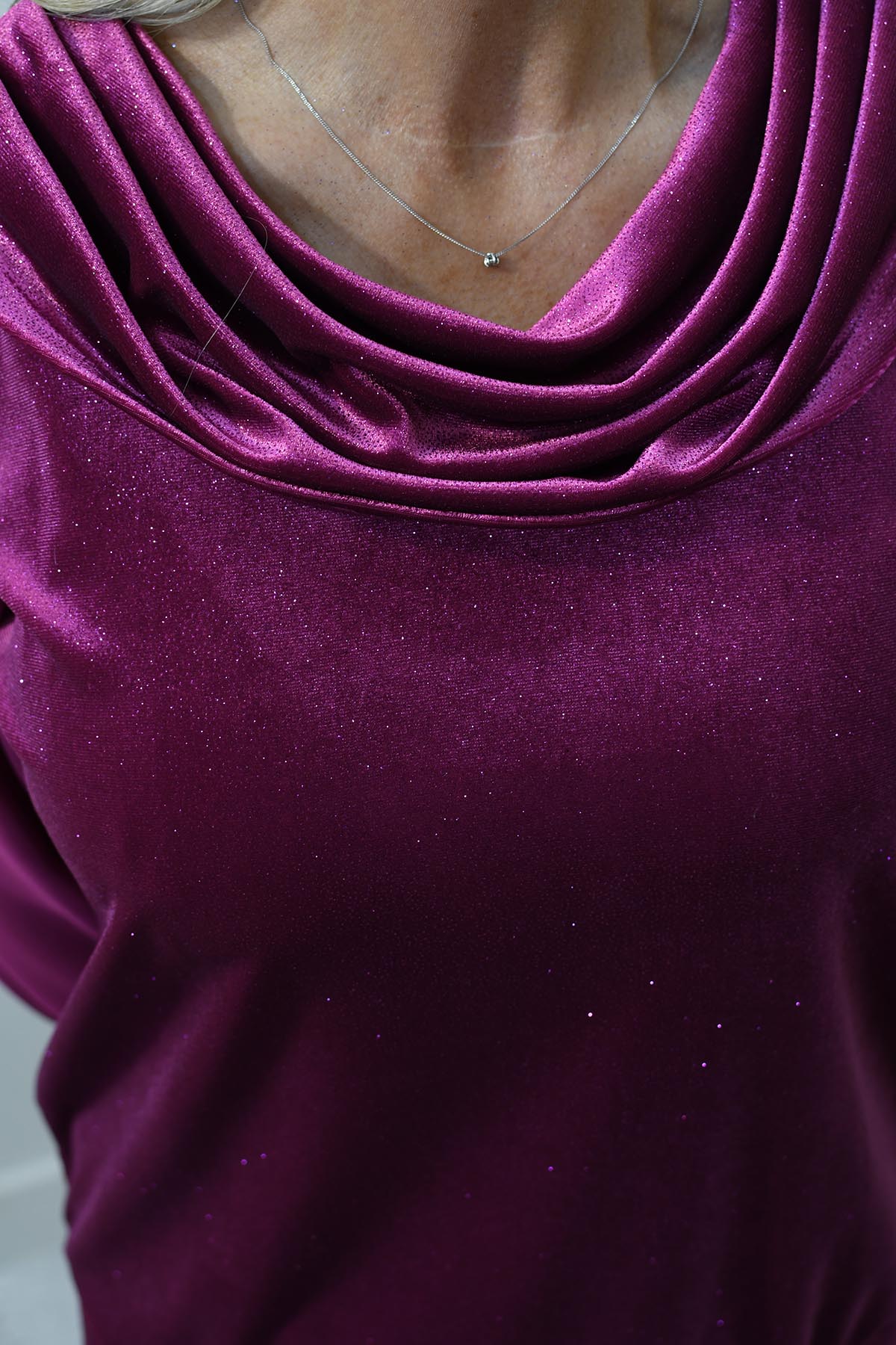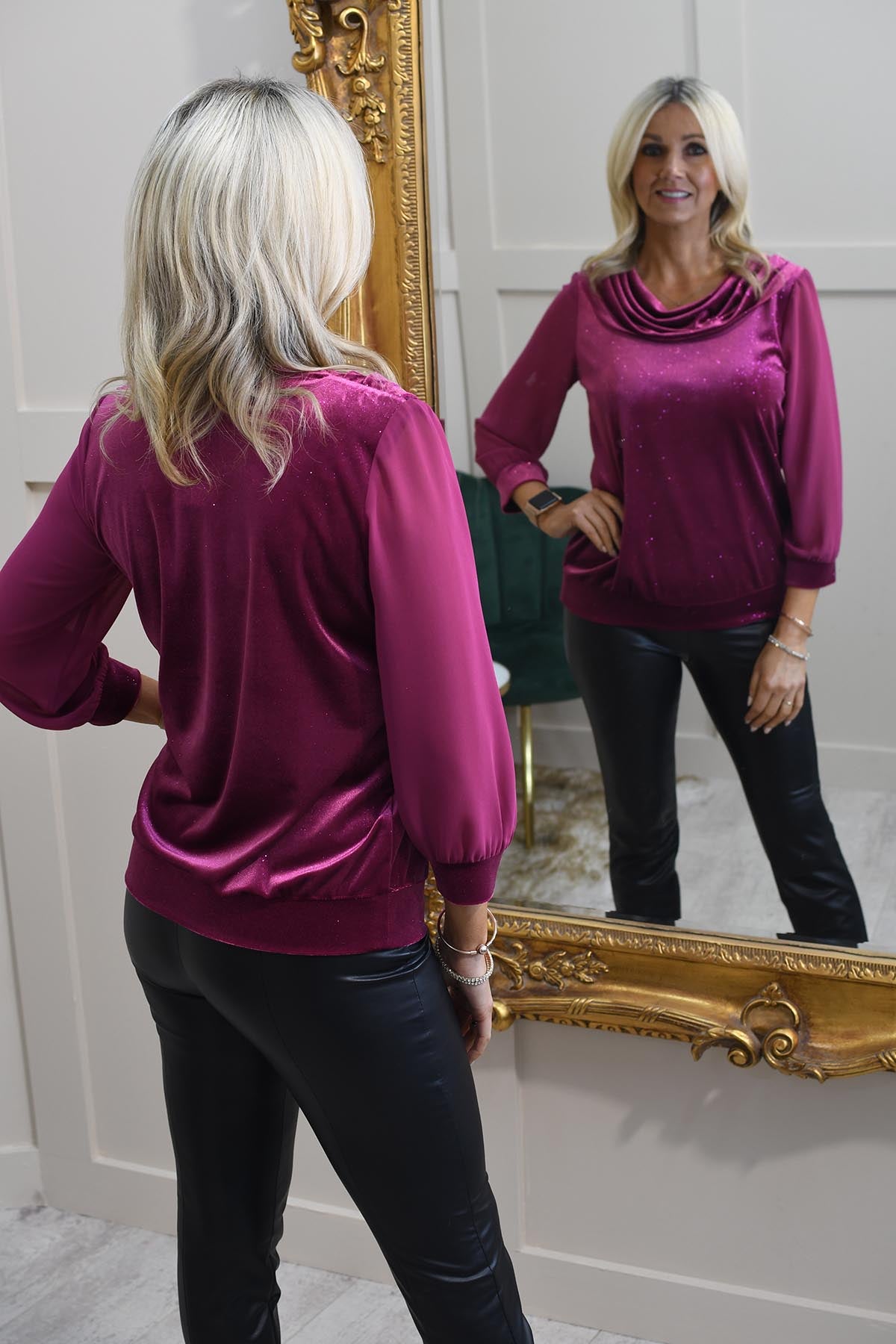 YEW Fuchsia Pink Sparkle Cowl Neck Long Sleeve Top - 2647 Evelyn