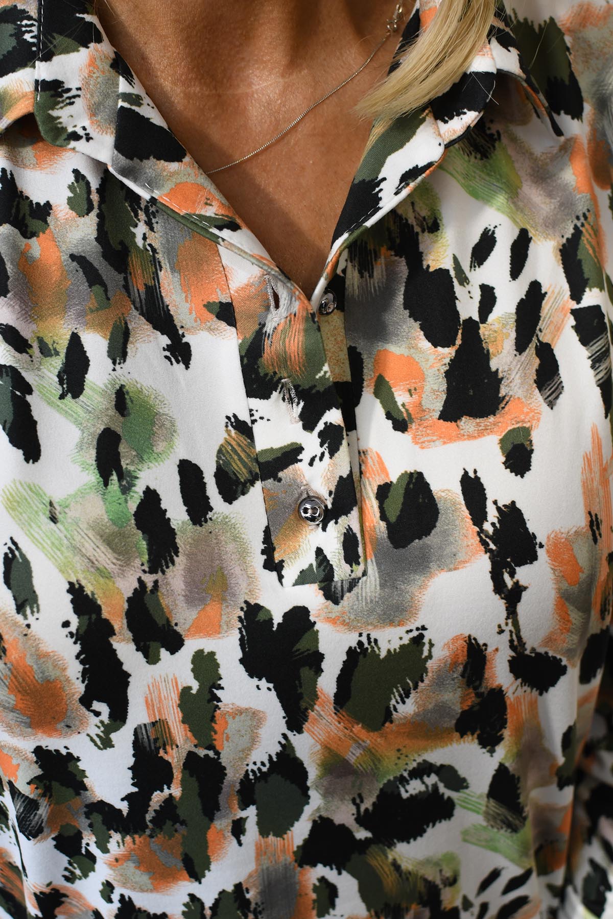 YEW- Abstract Pattern 1/4 Button Blouse- Khaki, Orange & White- 3902 Rosa