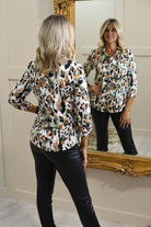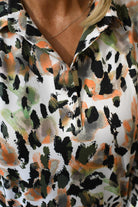 Add a modern twist to your casual wardrobe with this abstract pattern 1/4 button blouse in khaki, orange, and white. Crafted from a premium blend of 70% viscose and 30% polyester, it offers a soft, breathable feel with excellent durability for everyday wear. The bold abstract print delivers a fresh, contemporary edge, while the quarter-button neckline allows versatile styling—wear it open for relaxed appeal or buttoned for a more refined look. Lightweight and easy to layer, this blouse is perfect for casual lunches, weekend outings, or smart-casual occasions. A stylish essential that balances comfort, versatility, and standout design.