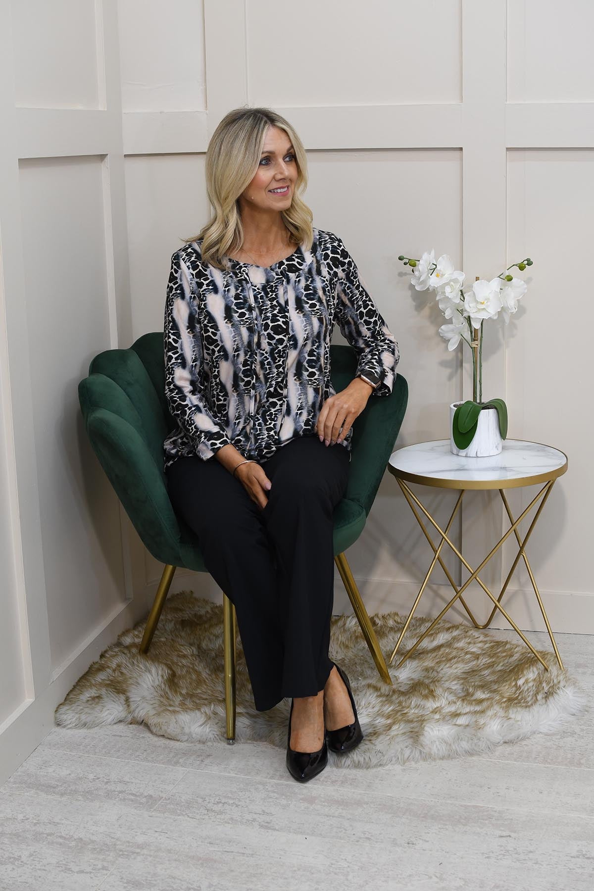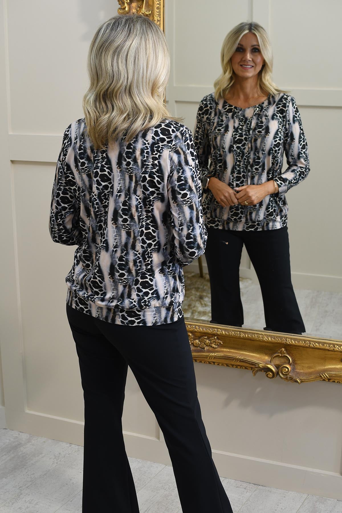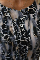 YEW Animal Print Top With Drawstring- Black & Beige 4190 Chris