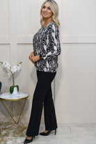 Make a statement with the YEW Animal Print Top in bold black and beige. Crafted from 70% viscose and 30% polyester, it offers breathable softness with a smooth finish that’s comfortable for all-day wear. The eye-catching animal print adds a contemporary edge, while the adjustable drawstring detail allows you to tailor the fit for a flattering silhouette. Versatile and stylish, this top pairs effortlessly with jeans, trousers, or skirts, making it perfect for both casual and smart-casual occasions. A must-have for women who love modern separates that combine comfort, confidence, and standout design.