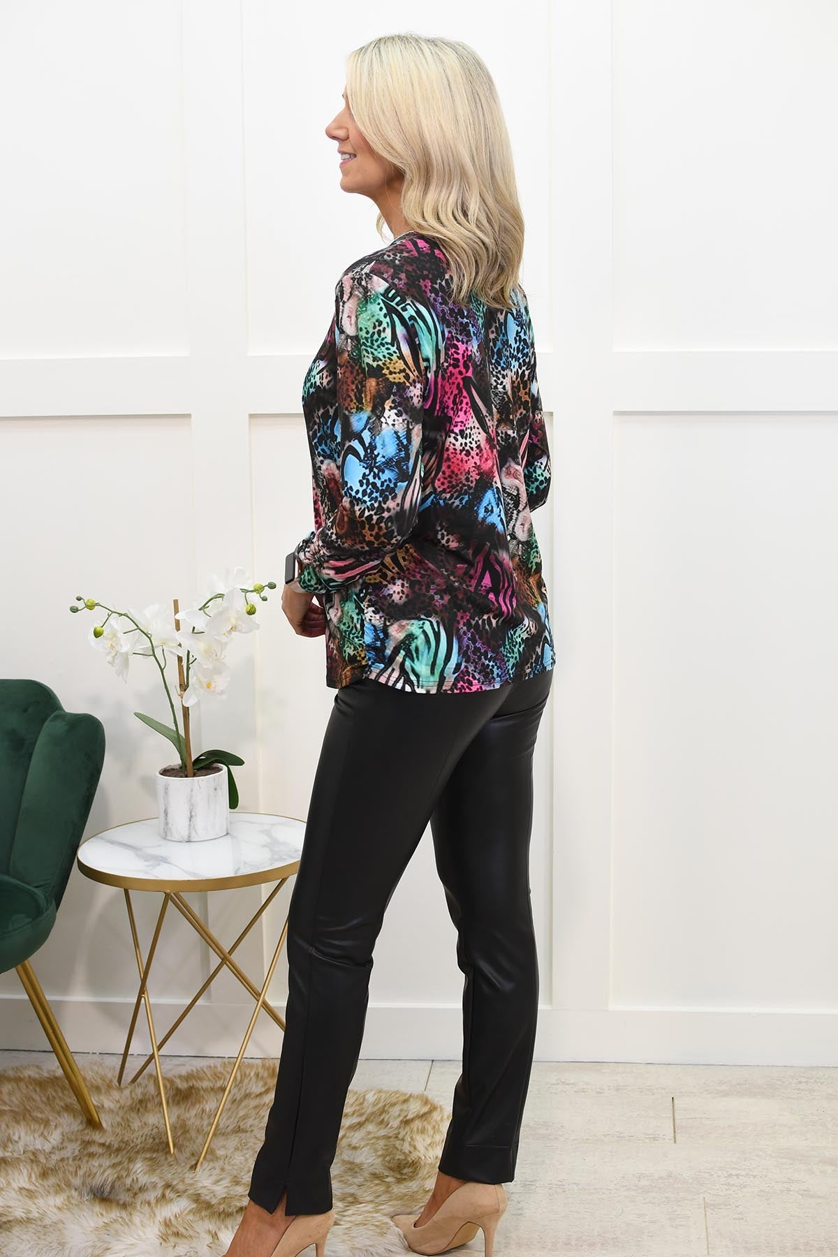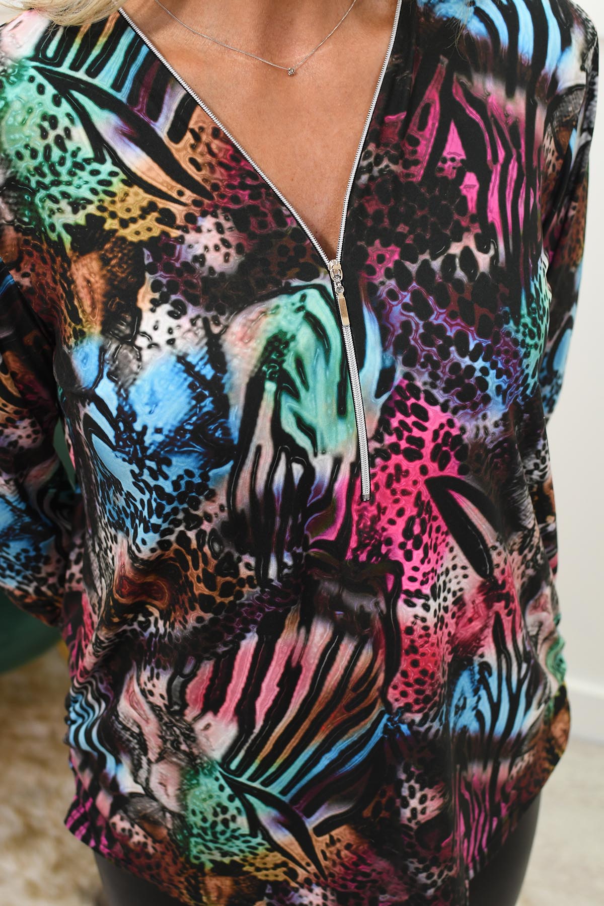 YEW Multicolour Animal Print 1/4 Zip Top- 3842 Sasha