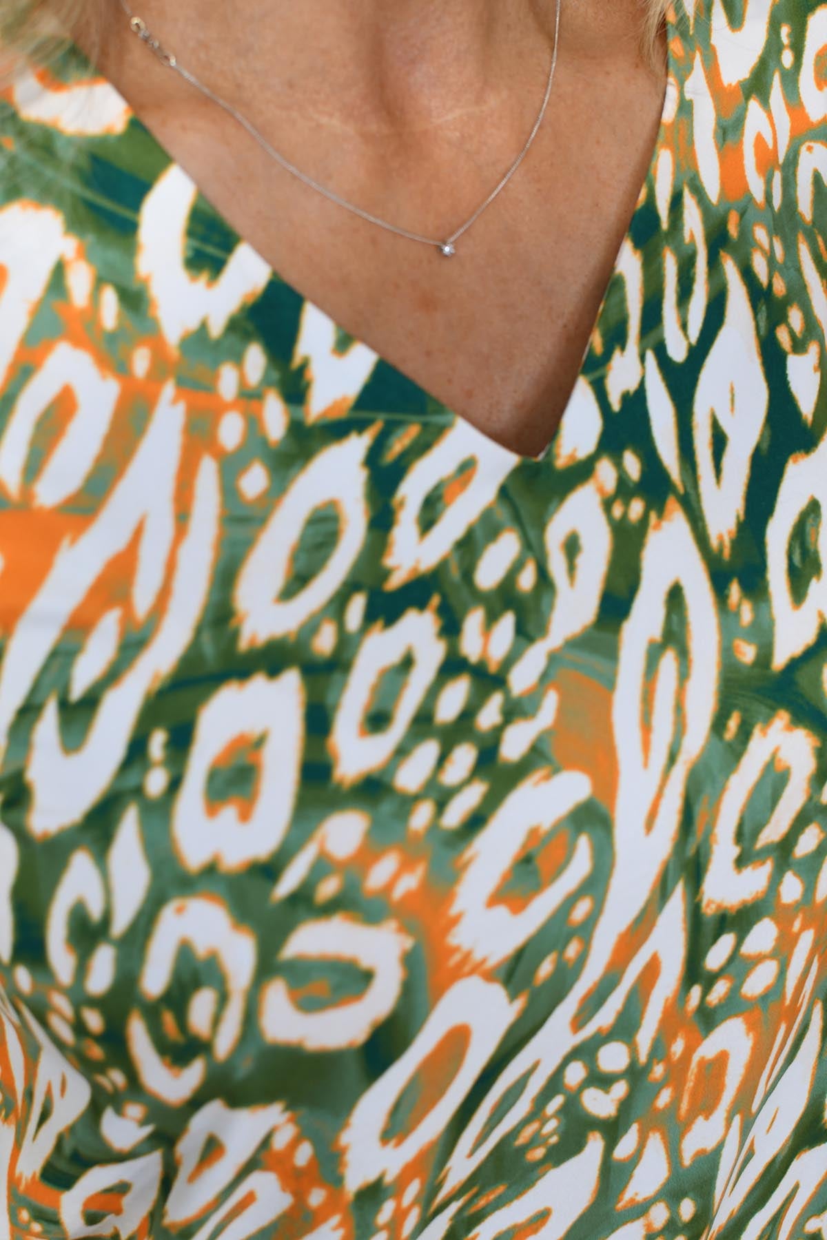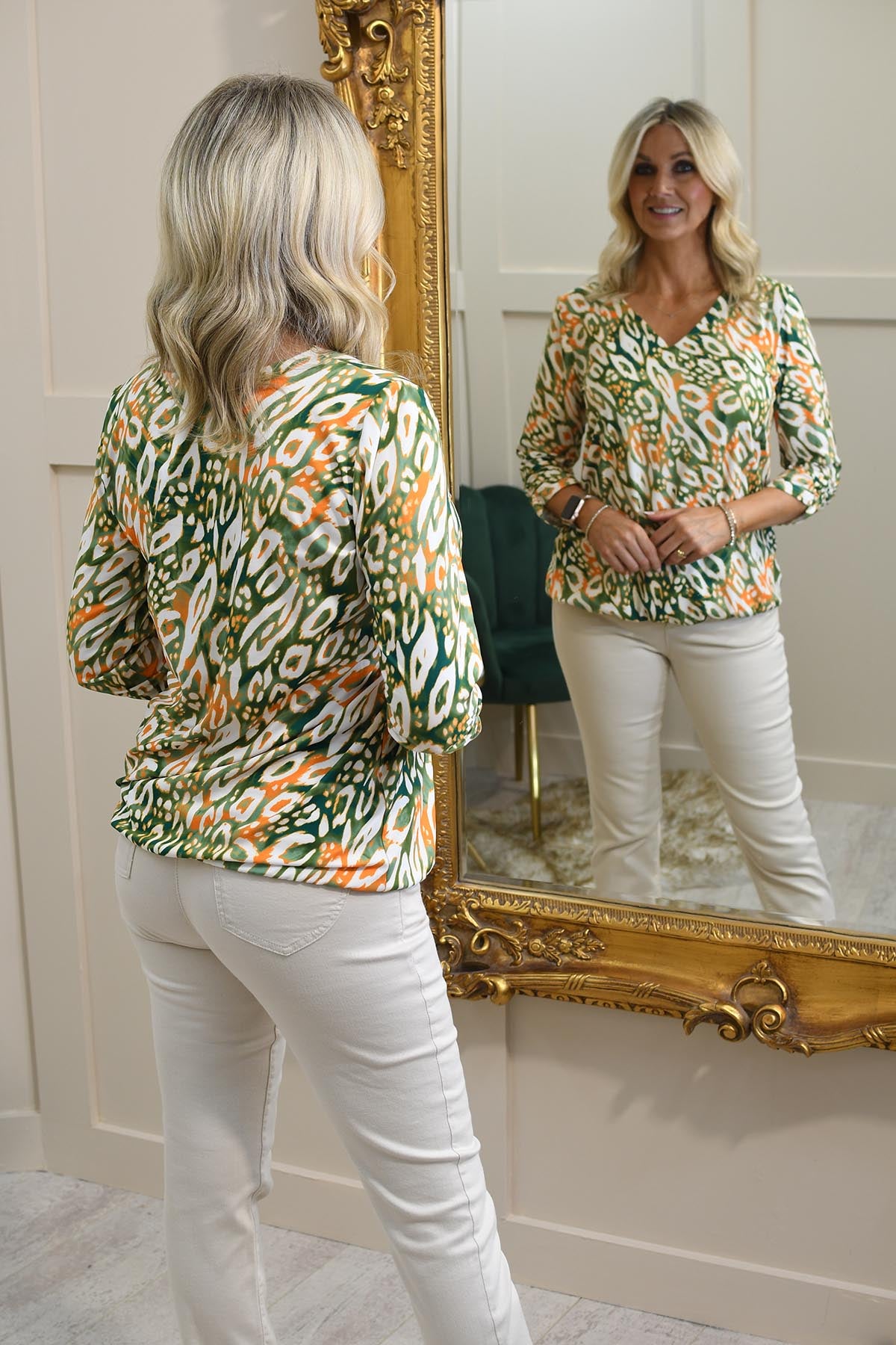 YEW Olive Green & Orange Abstract Print Long Sleeve Top- 4153B Alana