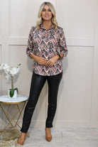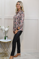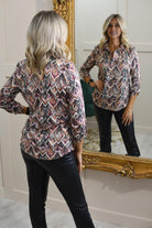 Bring effortless boho charm to your wardrobe with this plume pattern 1/4 button blouse in rich shades of khaki, burnt orange, and burgundy. Crafted from a soft, breathable blend of 70% viscose and 30% polyester, it combines lightweight comfort with lasting durability. The striking feather-inspired design adds a unique, eye-catching detail, while the quarter-button neckline offers versatile styling—wear it open for a relaxed look or buttoned for a polished finish. Perfect for casual outings, weekend getaways, or layering under jackets, this blouse transitions seamlessly from day to night. A must-have piece for women who love chic, comfortable, and versatile style.