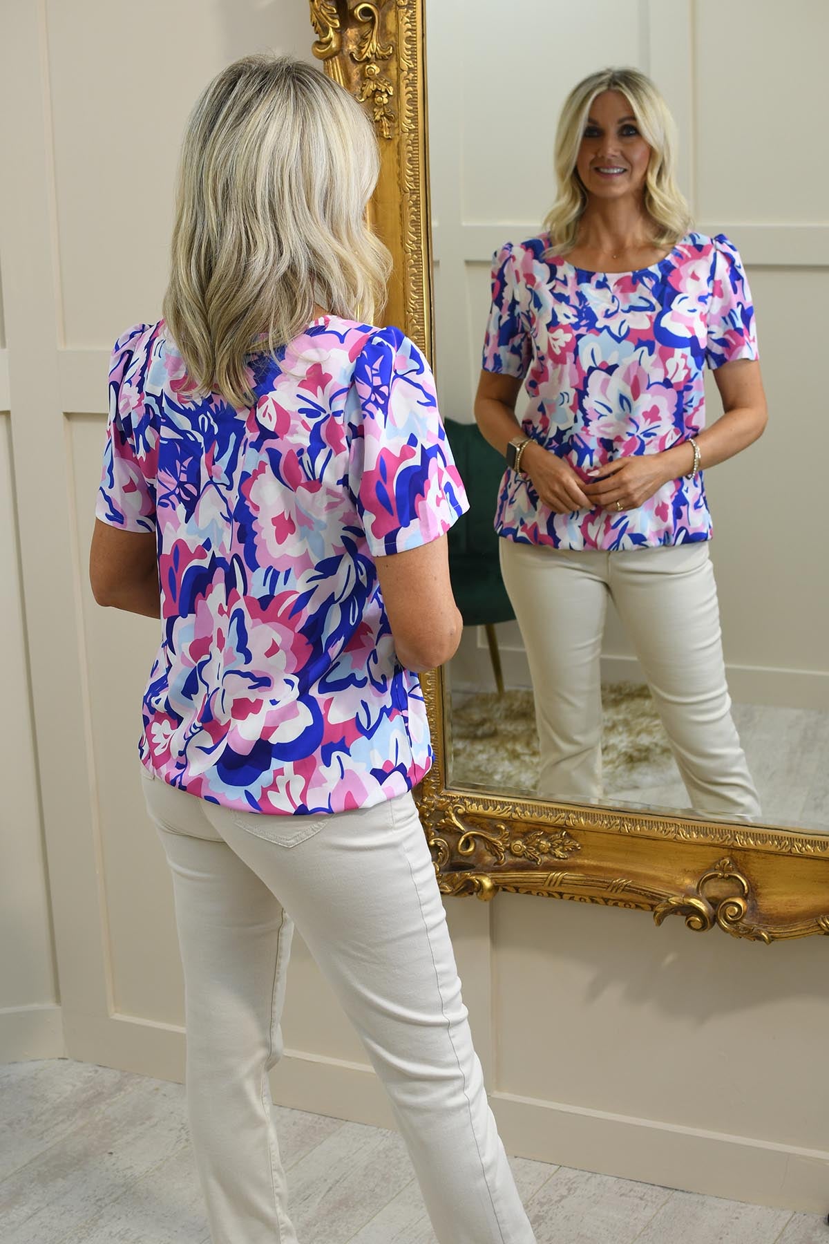 Add a vibrant touch to your wardrobe with the YEW Royal Blue & Pink Floral Print Top. Crafted from a soft and breathable blend of 70% polyester and 30% viscose, this top offers all-day comfort with a flattering silhouette. The bold floral print in royal blue and pink brings a fresh, feminine charm, while the elasticated waist cinches gently for a defined shape. Featuring a relaxed fit and stylish design, it’s perfect for pairing with jeans, skirts, or trousers for both casual and semi-formal outings. Effortlessly chic, this top is a standout choice for every season.
