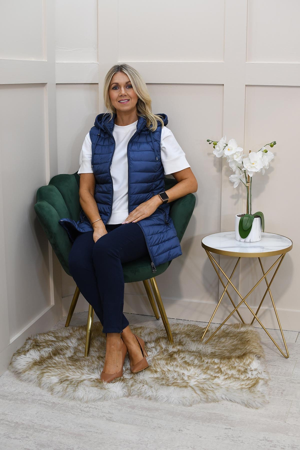 Barbara Lebek- Padded Gilet With Detachable Hood- Denim Blue-31260052