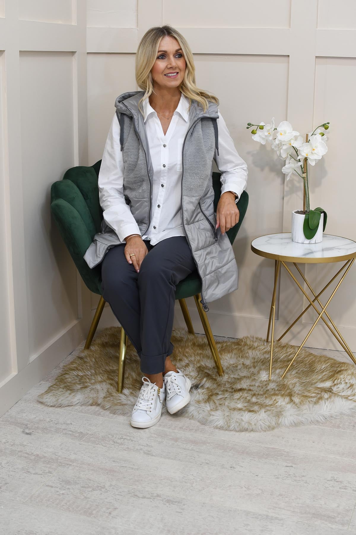 Stay warm in style with this steel padded gilet from Barbara Lebek, designed with a cozy faux fur trim for a chic finishing touch. Crafted from 100% polyester, it offers lightweight insulation that keeps you comfortable without adding bulk, making it perfect for layering across the seasons. The sleeveless design provides ease of movement, while the padded texture delivers warmth and a modern look. Versatile and practical, this gilet pairs effortlessly with knitwear, blouses, or casual tops for both everyday wear and smart-casual outings. A wardrobe essential, it combines functionality with fashionable detail for year-round layering.