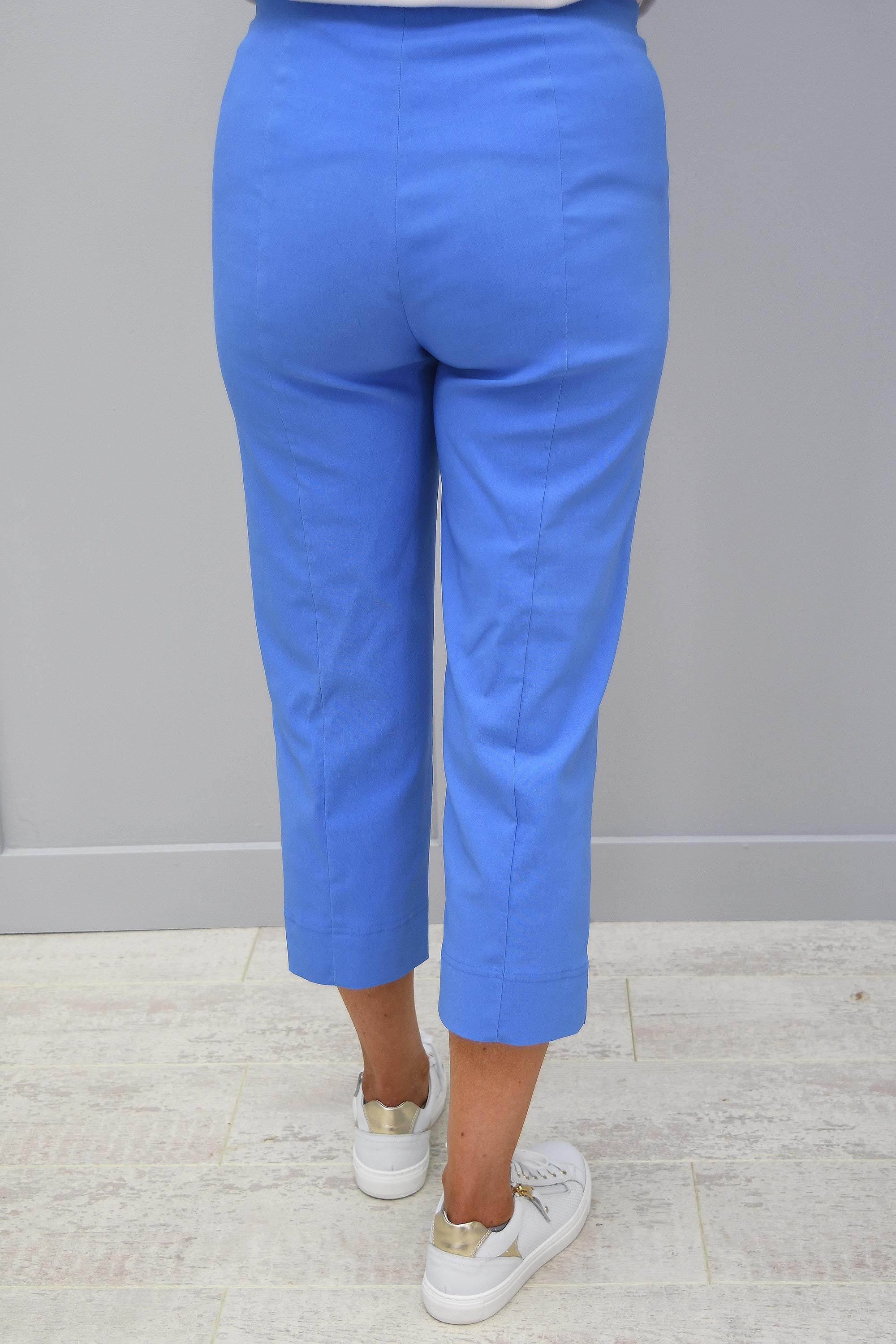 Comfort in crops this season in our Robell Marie Cornflower Blue Cropped Trousers Trousers. These cropped trousers have an extremely comfortable pull on design and are perfect for your everyday errands…your new wardrobe essential! The flat elasticated waistband is neat, with no zips or buttons, which make these cropped trousers your new go-to item. The 3/4-length leg will lengthen and slim your leg, helping you to look and feel your best. They are extremely stretchy and lightweight, perfect for women who want luxury and don’t want to compromise when it comes to comfort. If you’ve booked your summer holiday, then you’ll want these cropped trousers in your suitcase. Wear these beautiful Robell Marie Cornflower Blue Cropped Trousers with a pair of sandals during the day and perfect for dressing up in the evening with your favourite summer wedges. High quality and stylish…what more could you want!