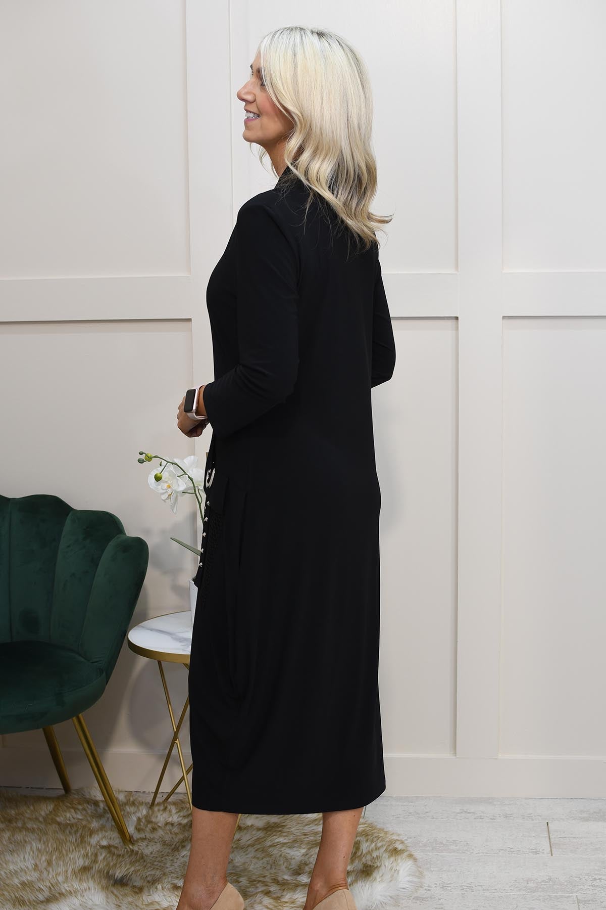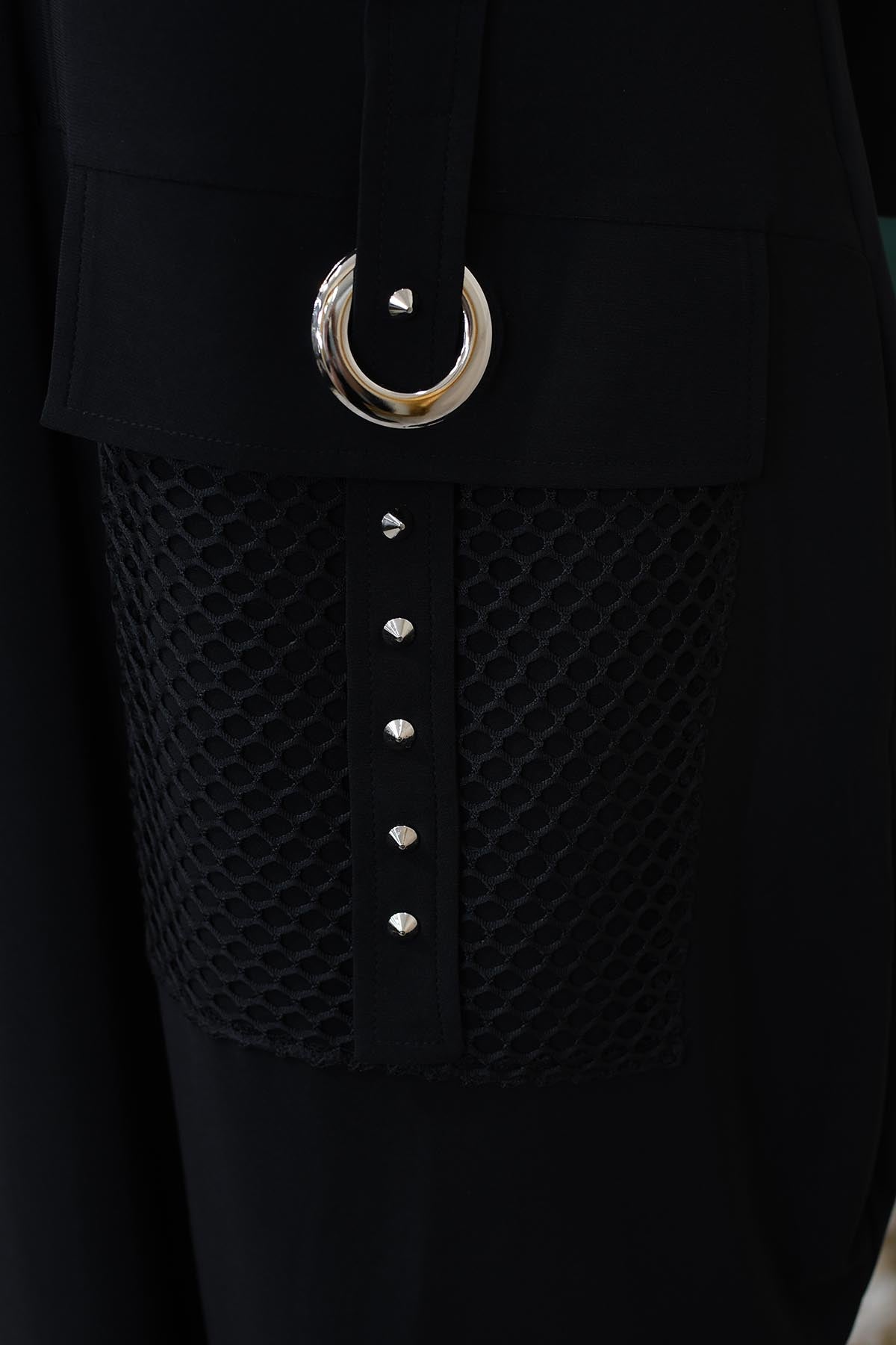 I.nco Black V Neck Dress With Necklace And Net Pocket- I-24AW-2124-10