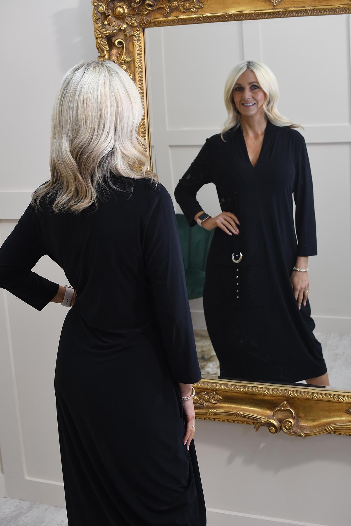 Our Model Rhonda wears size 10 & is 5ft 6”.