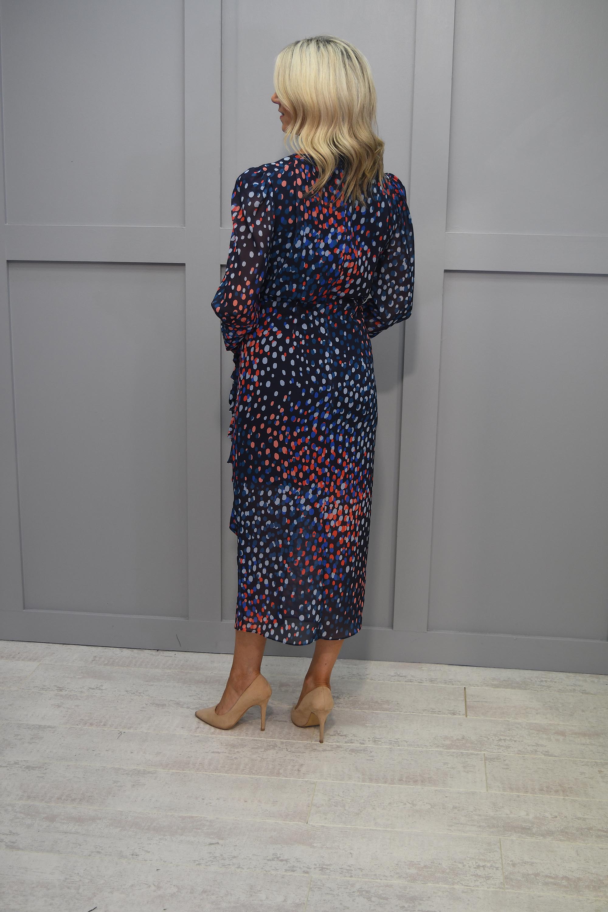 Kate Cooper Navy, Red & Royal Spot Dress With Sheer Detailing Description