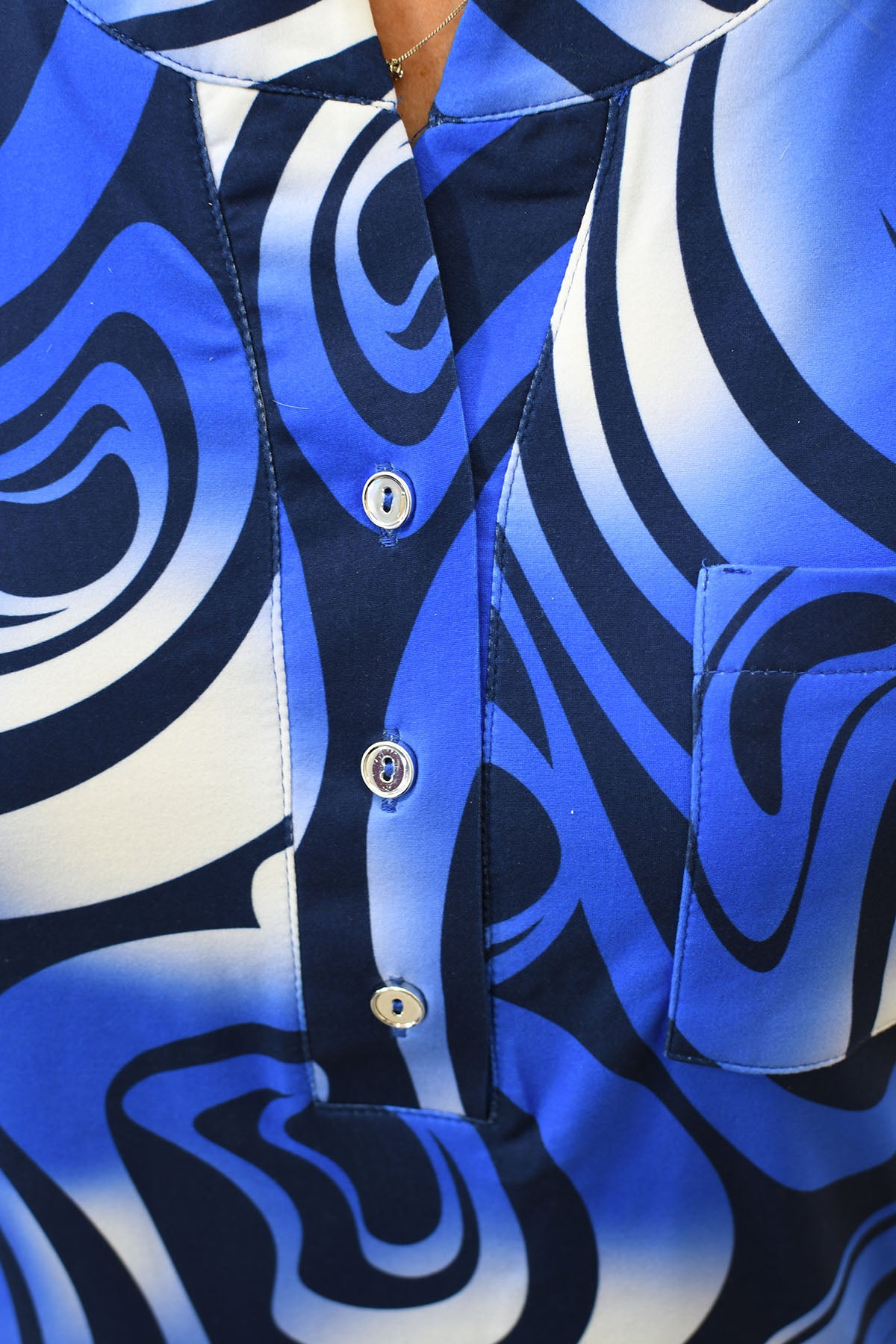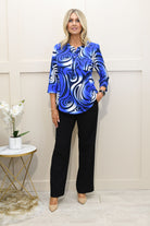Avalon - 1/4 Button Blouse - Royal Blue - A08