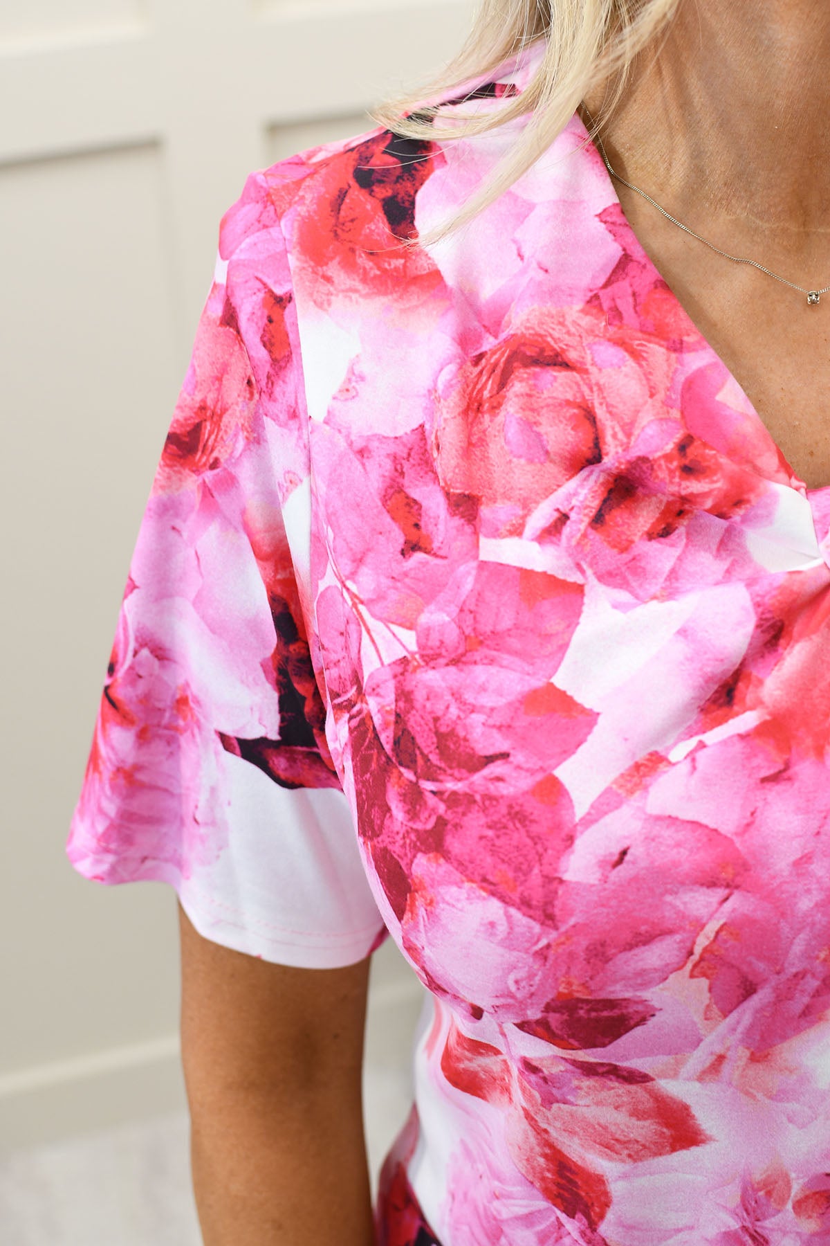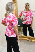 Avalon - Floral Blouse With Keyhole Detail - Magenta - V410 Sandy