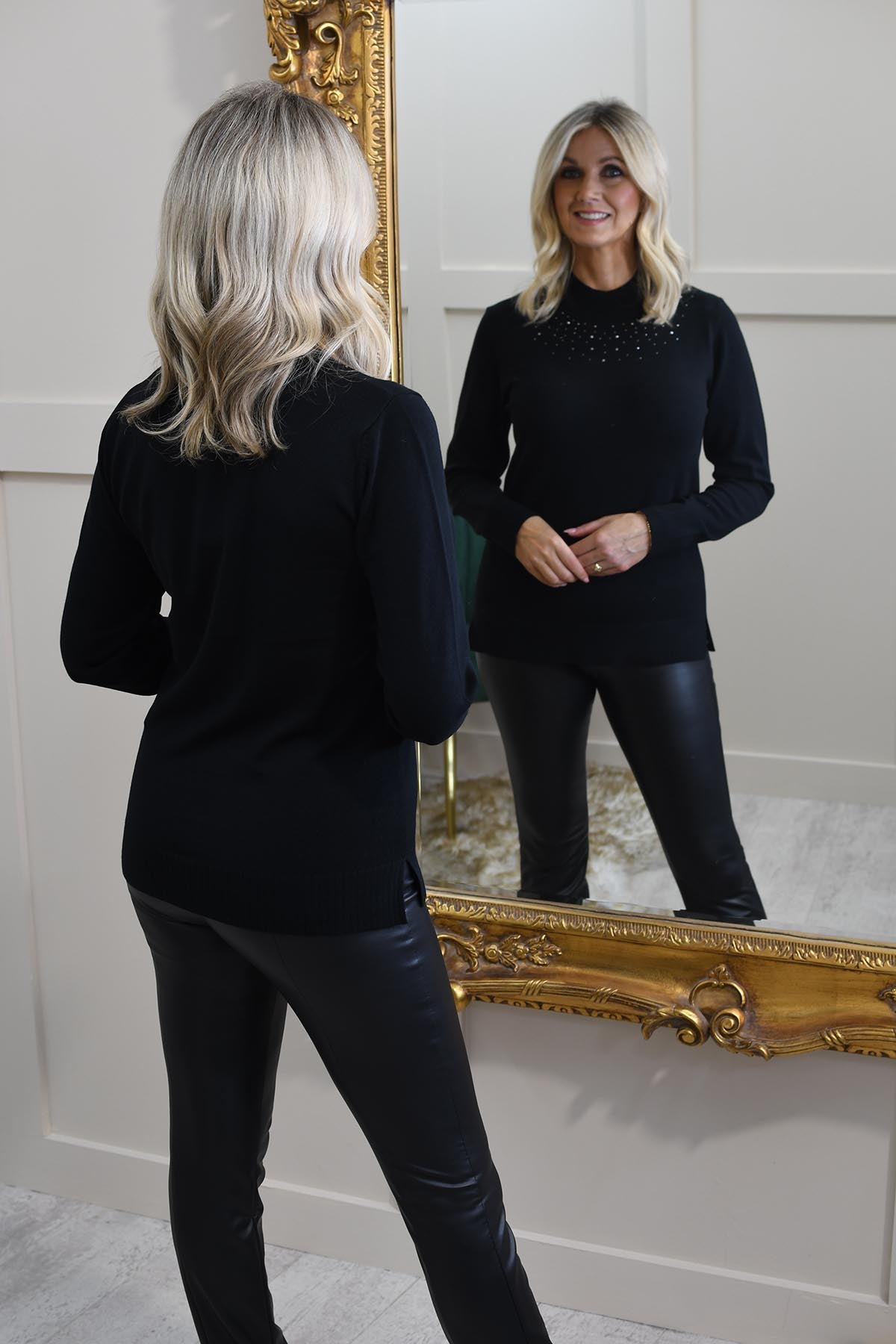 Barbara Lebek Black Knit Jumper With Diamante Detail-45150052