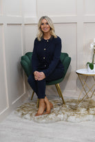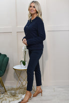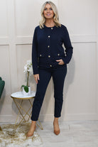 Barbara Lebek Navy Textured Relax Fit Blazer- 40020052