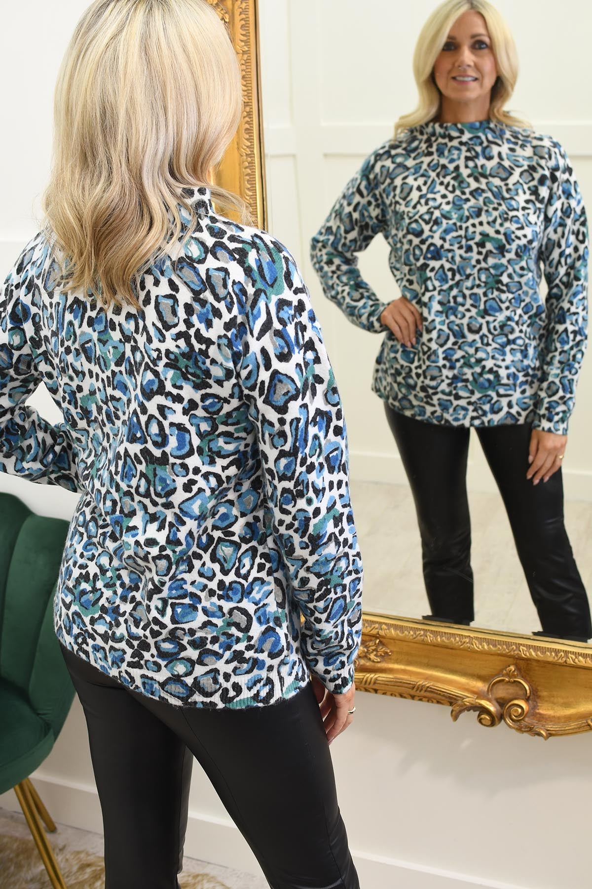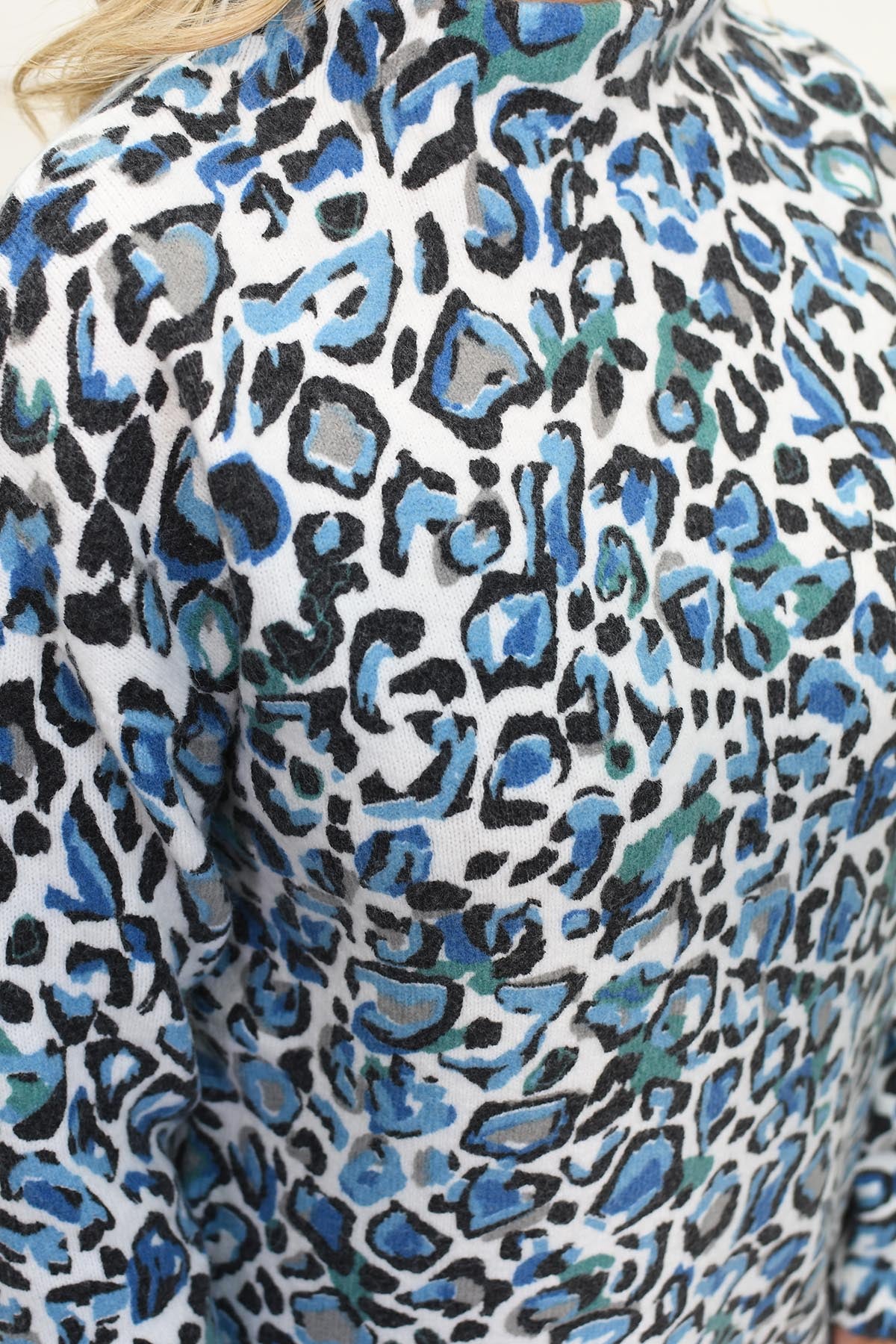 Barbara Lebek Teal & Turquoise Leopard Print Sweater - 15400042