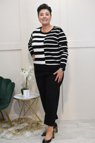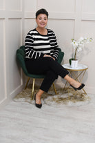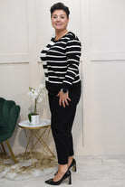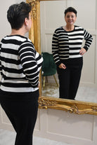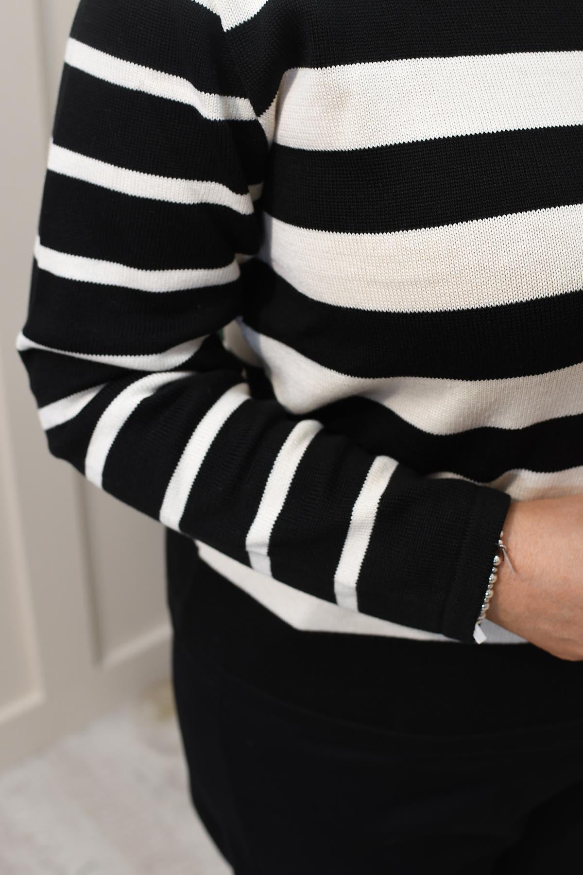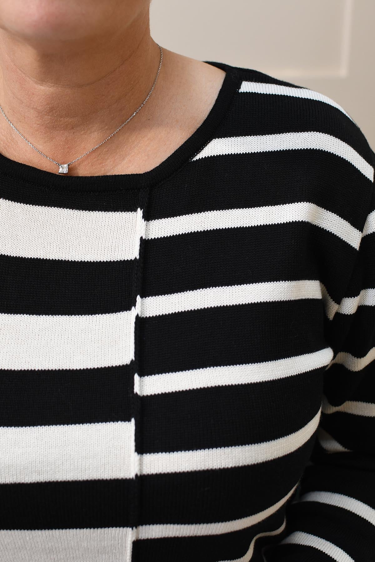 Beloved Contrast Stripe Knit Jumper-Black & Cream BA25-701
