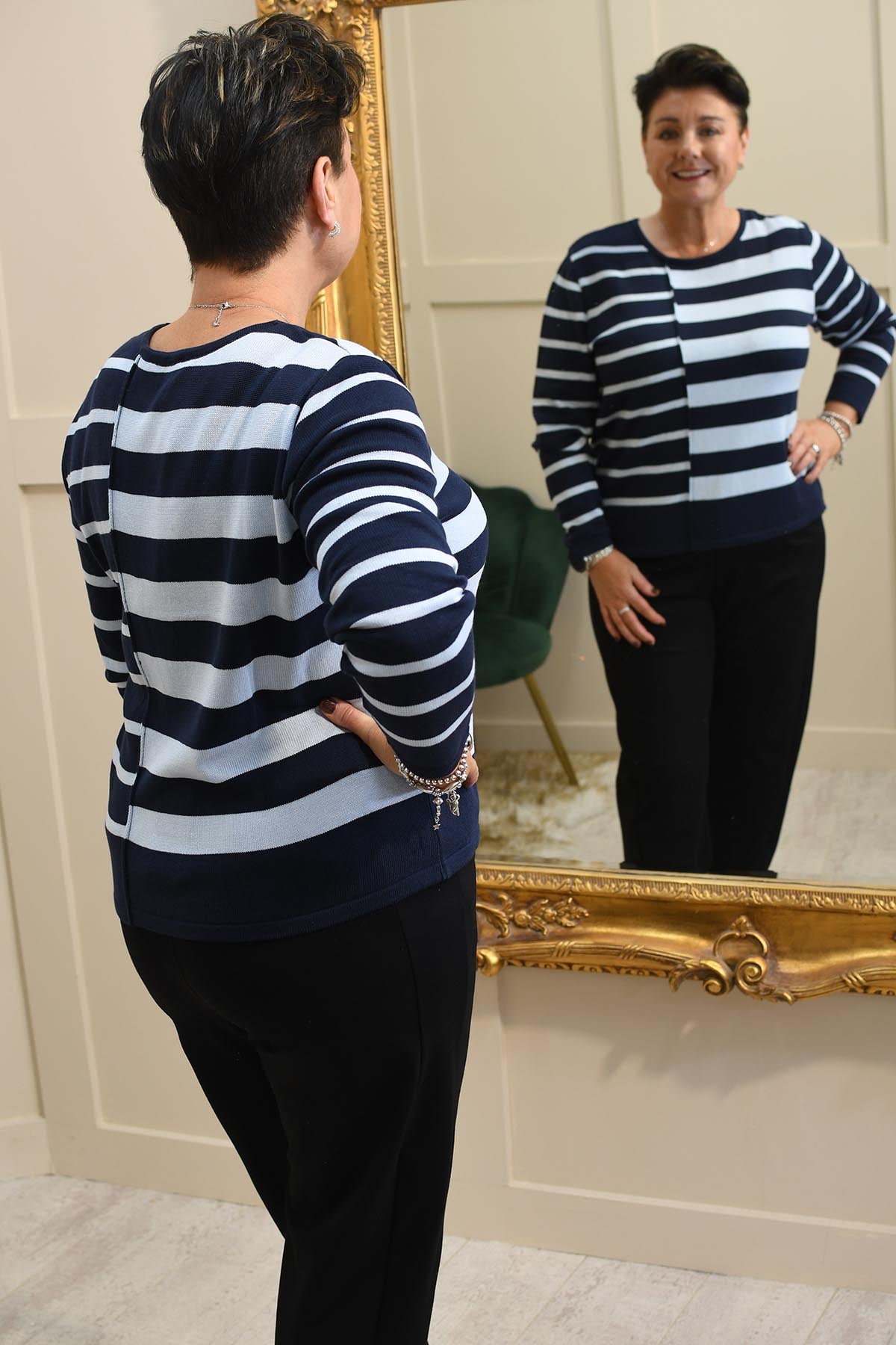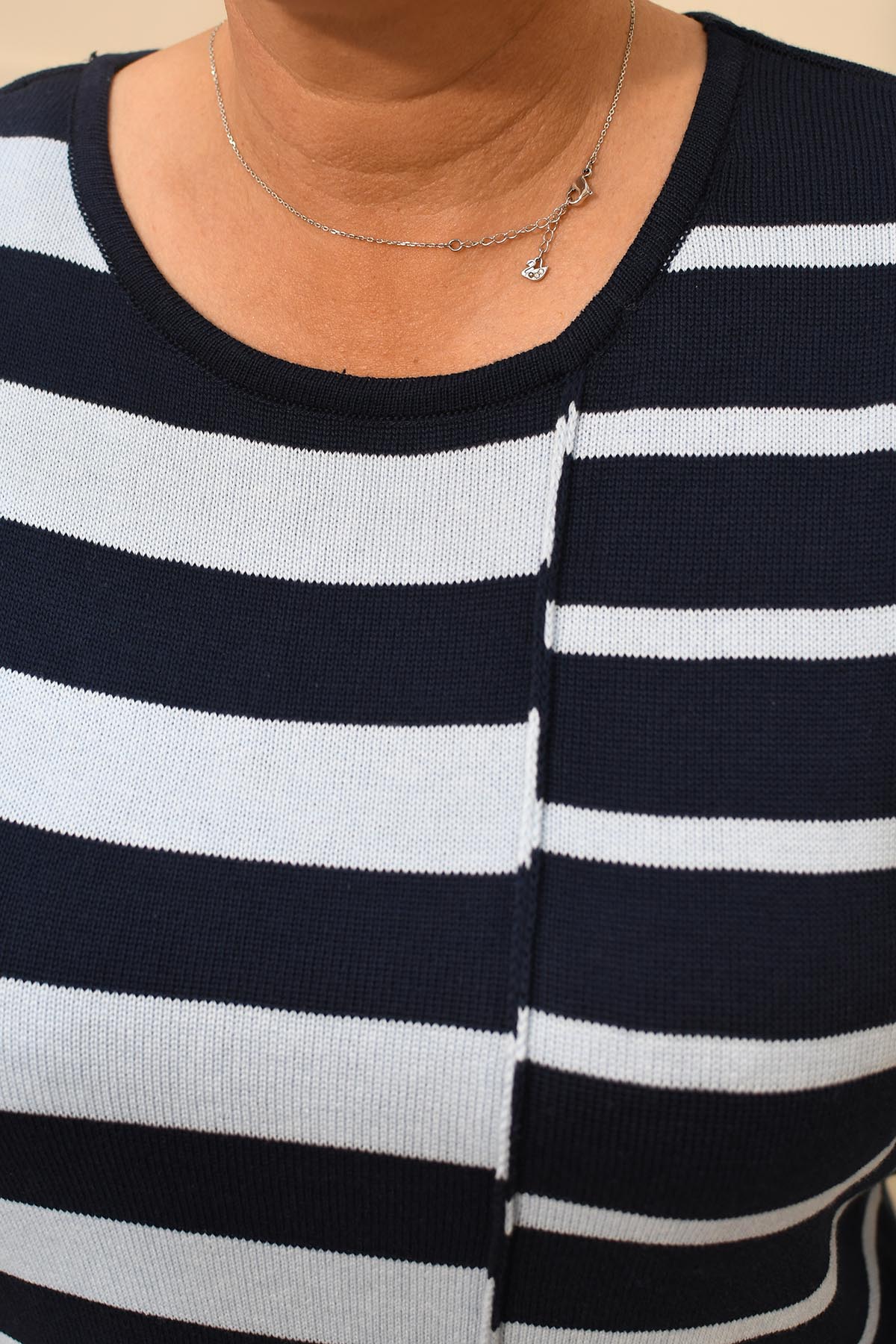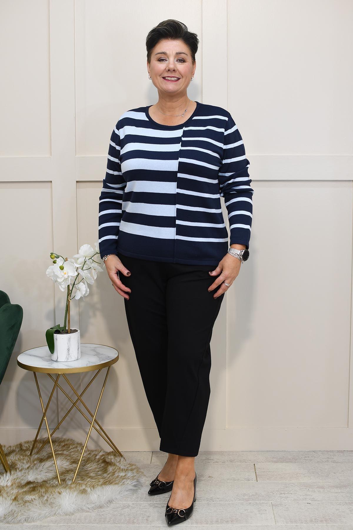 Beloved Contrast Stripe Knit Jumper-Navy & Powder Blue BA25-701
