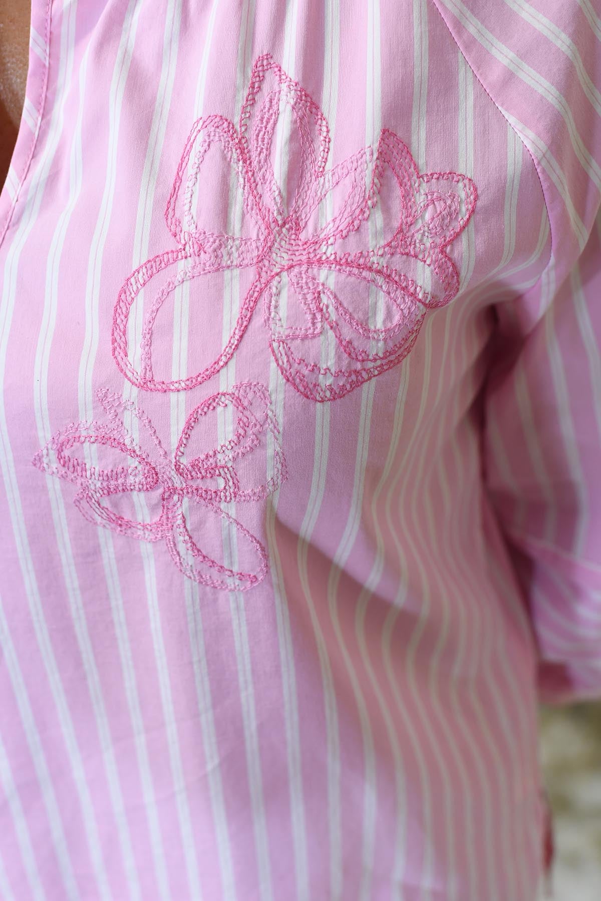 Bianca Baby Pink Pinstripe Blouse With Floral Embroidery- 55006 31 314 Rana