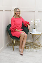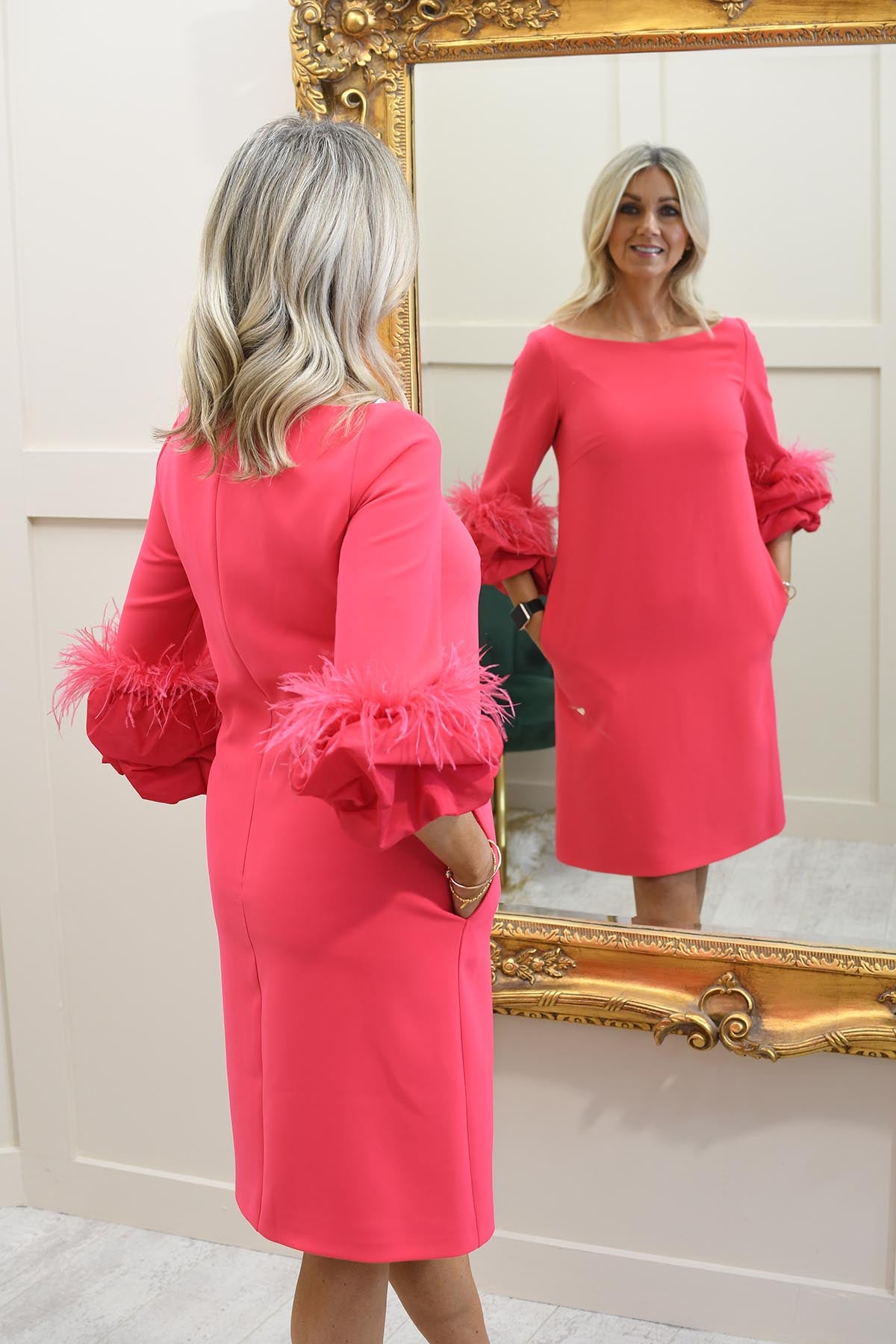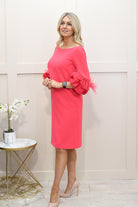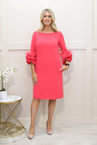 Carla Ruiz - Flamenco Feather Sleeve Shift Dress - Bright Pink - 52603