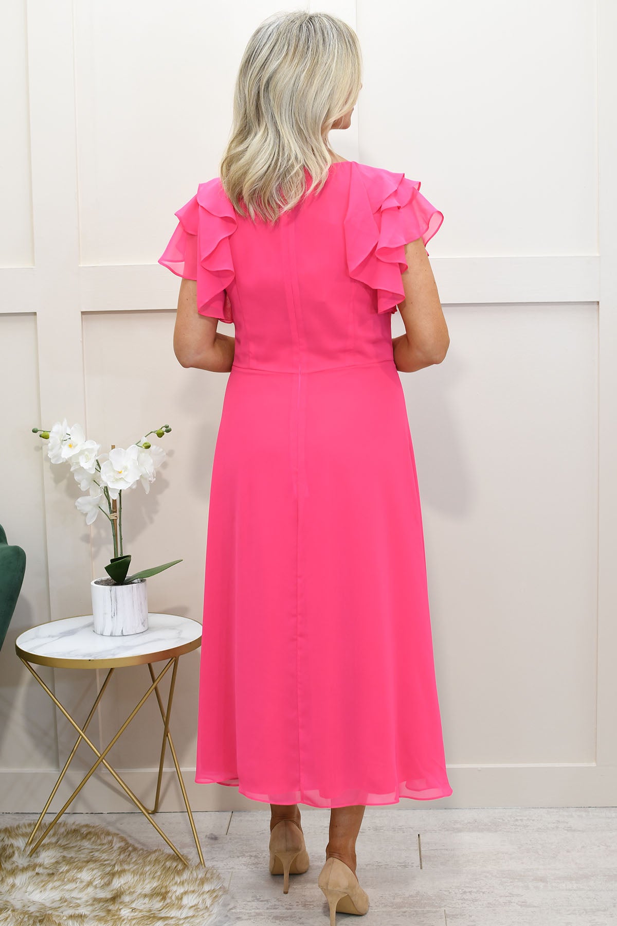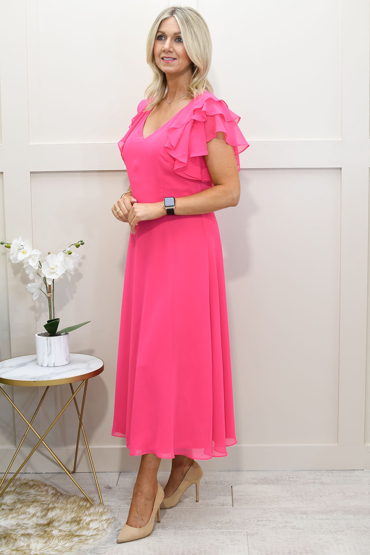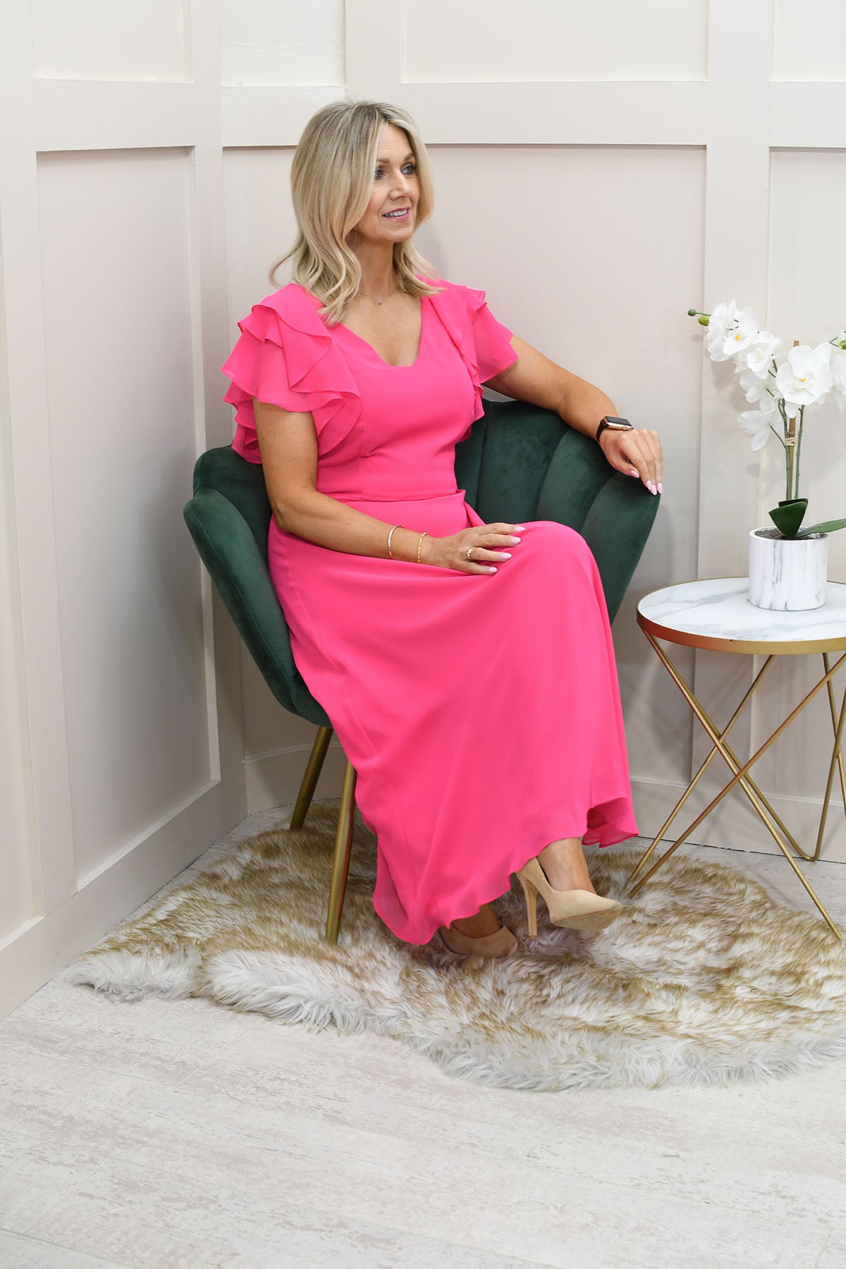 Daisy May - A Line Dress With Flutter Sleeves - Hot Pink - D-26SS-2619-20