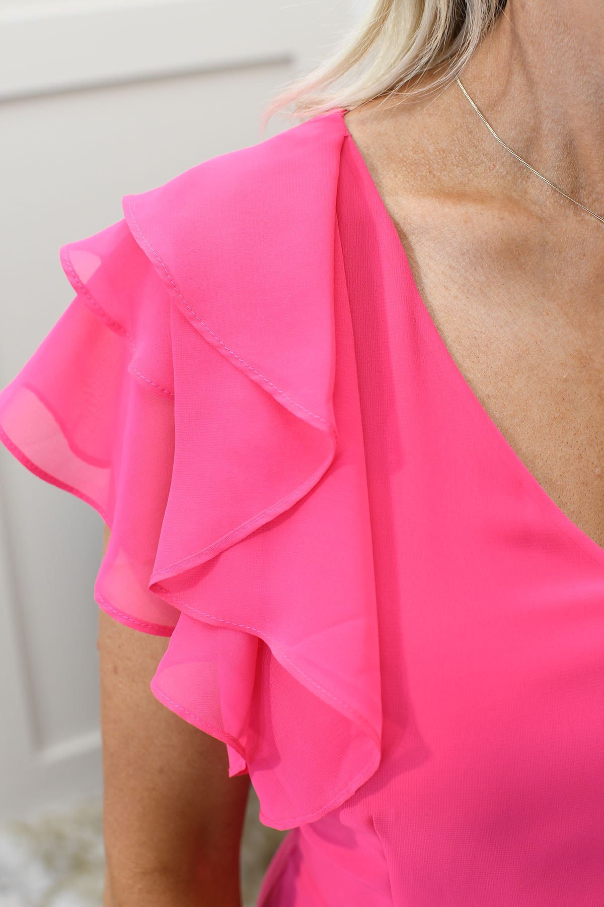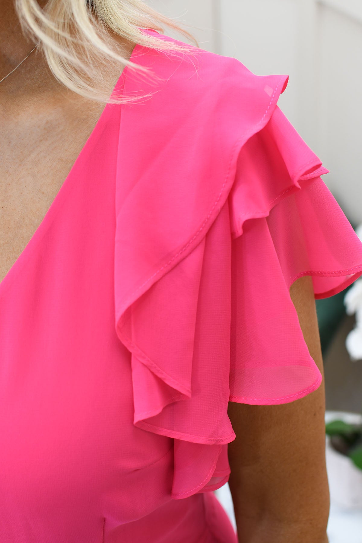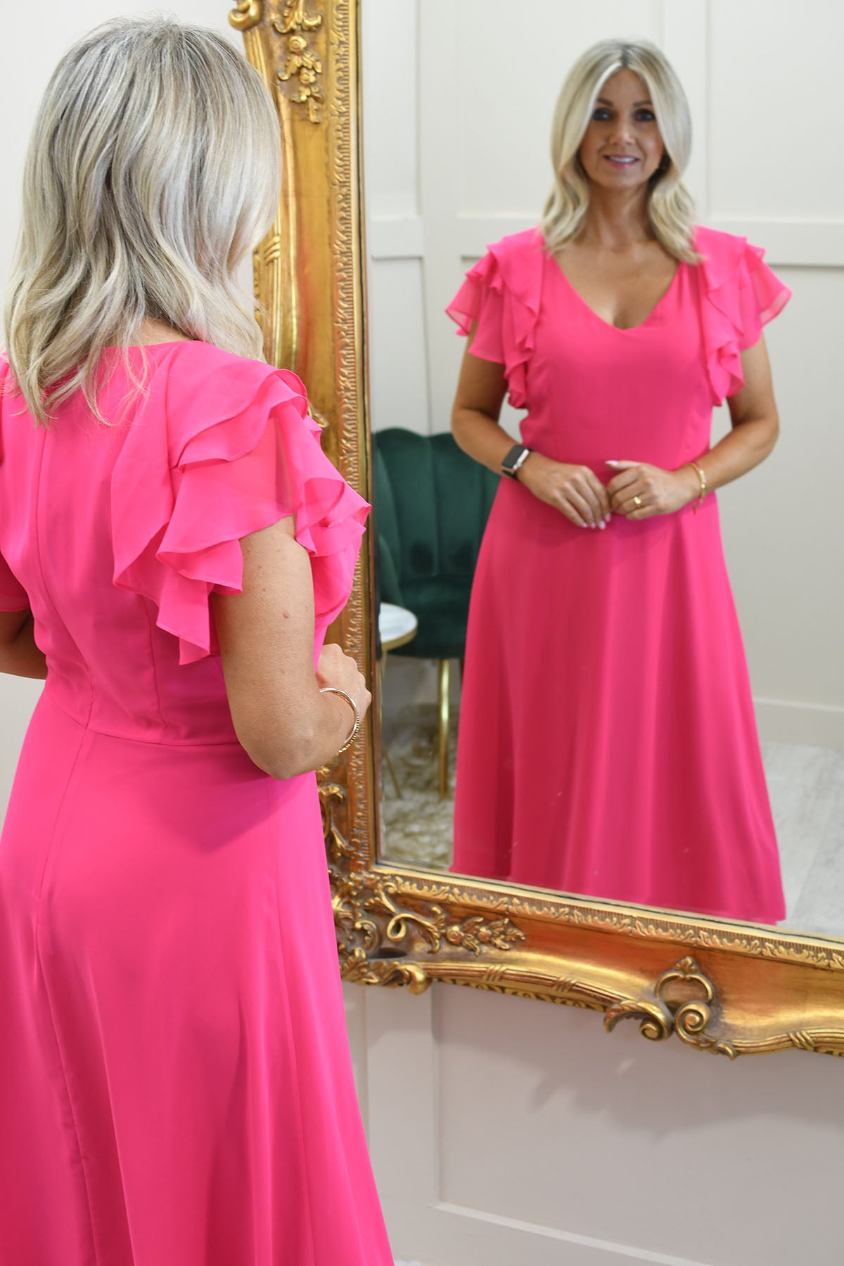 Daisy May - A Line Dress With Flutter Sleeves - Hot Pink - D-26SS-2619-20