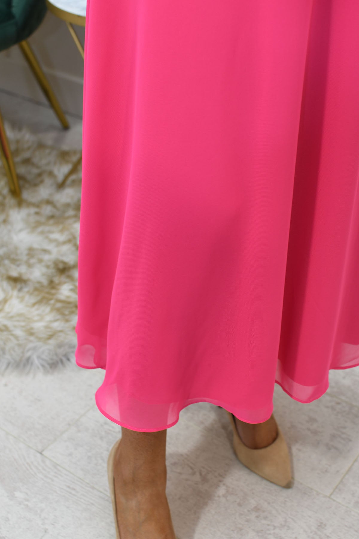 Make a vibrant statement with this hot pink A-line dress with flutter sleeves, designed to combine bold colour with effortless elegance. Crafted from 100% polyester, it offers a lightweight, smooth feel with a flattering structure that holds its shape beautifully. The A-line silhouette gently skims the body for a feminine, easy-to-wear fit, while the flutter sleeves add soft movement and a delicate touch. Perfect for both daytime and occasion wear, this dress brings confidence and style to any look