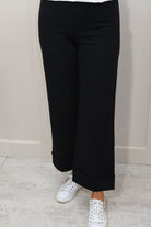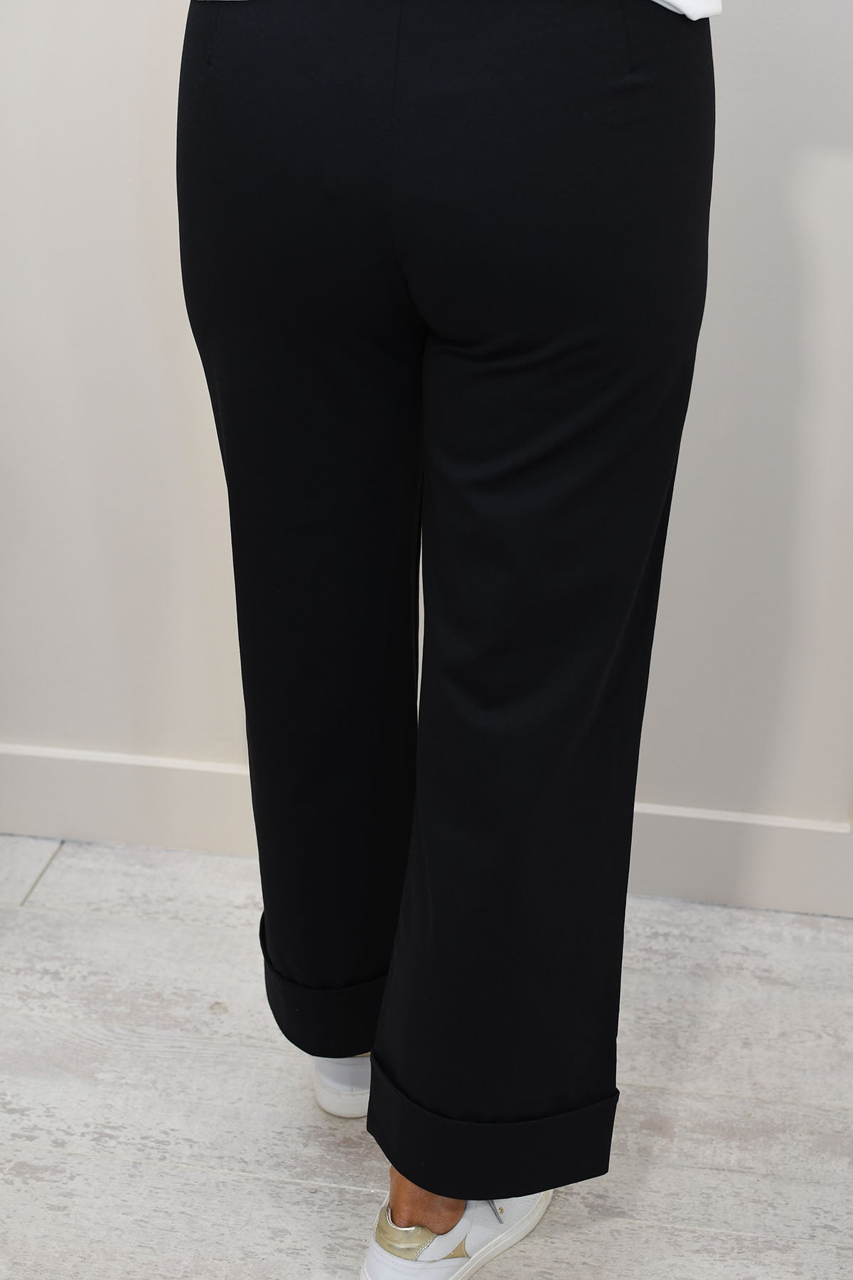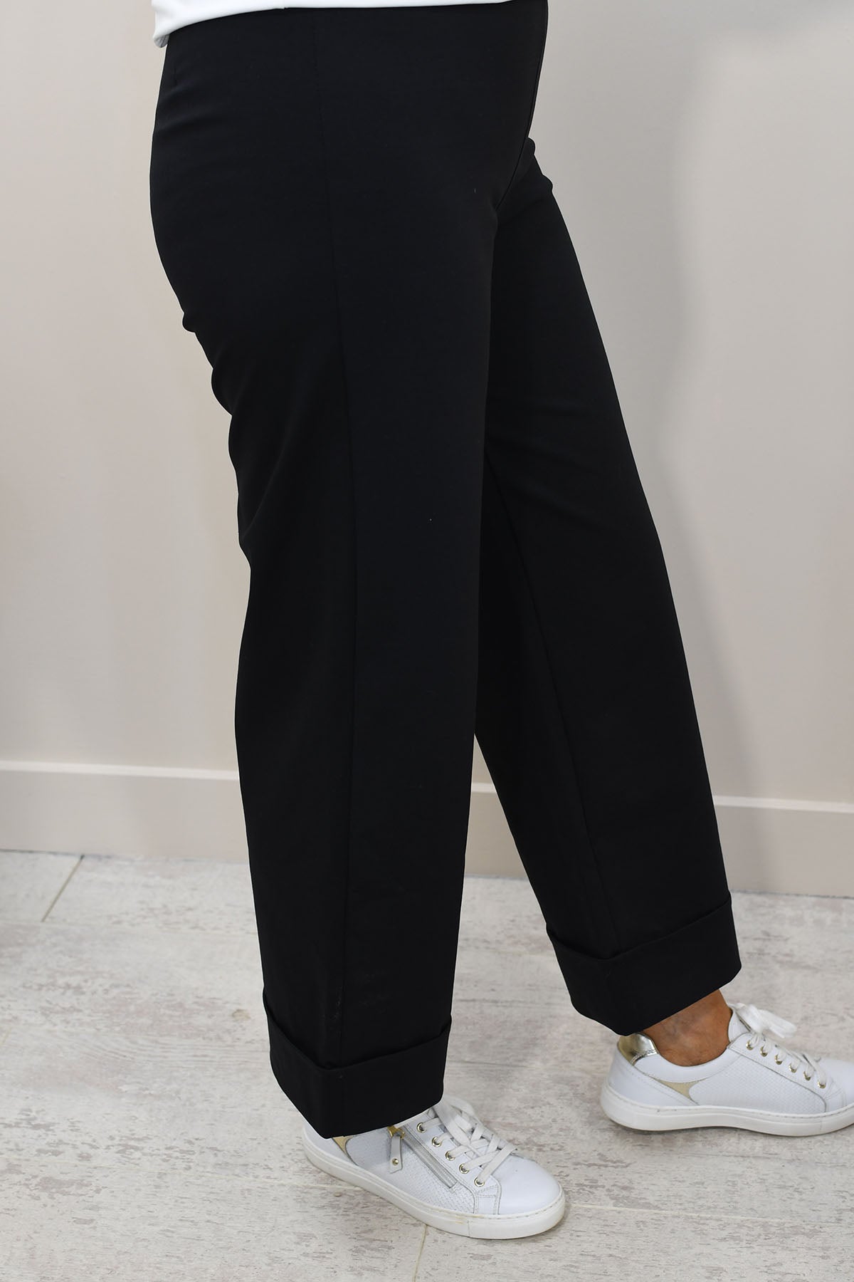 Add a polished staple to your everyday wardrobe with these black cuff hem trousers, designed to combine comfort with contemporary tailoring. Crafted from a premium cotton-rich blend of 66% cotton, 5% elastane, and polyamide, they offer a soft, structured feel with added stretch for ease of movement and a flattering fit. The cuffed hem detail adds a modern, refined finish, making these trousers easy to dress up or down. Perfect for pairing with blouses, knitwear, or tailored jackets, they work effortlessly for workdays or smart-casual occasions. A versatile essential that delivers comfort with clean, timeless style.