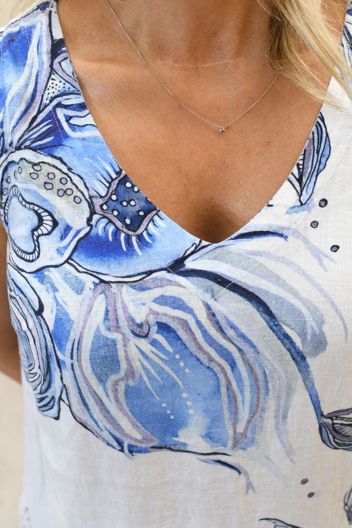 Dolcezza - 'Blue Flowers' Linen Dress - Blue - 26654