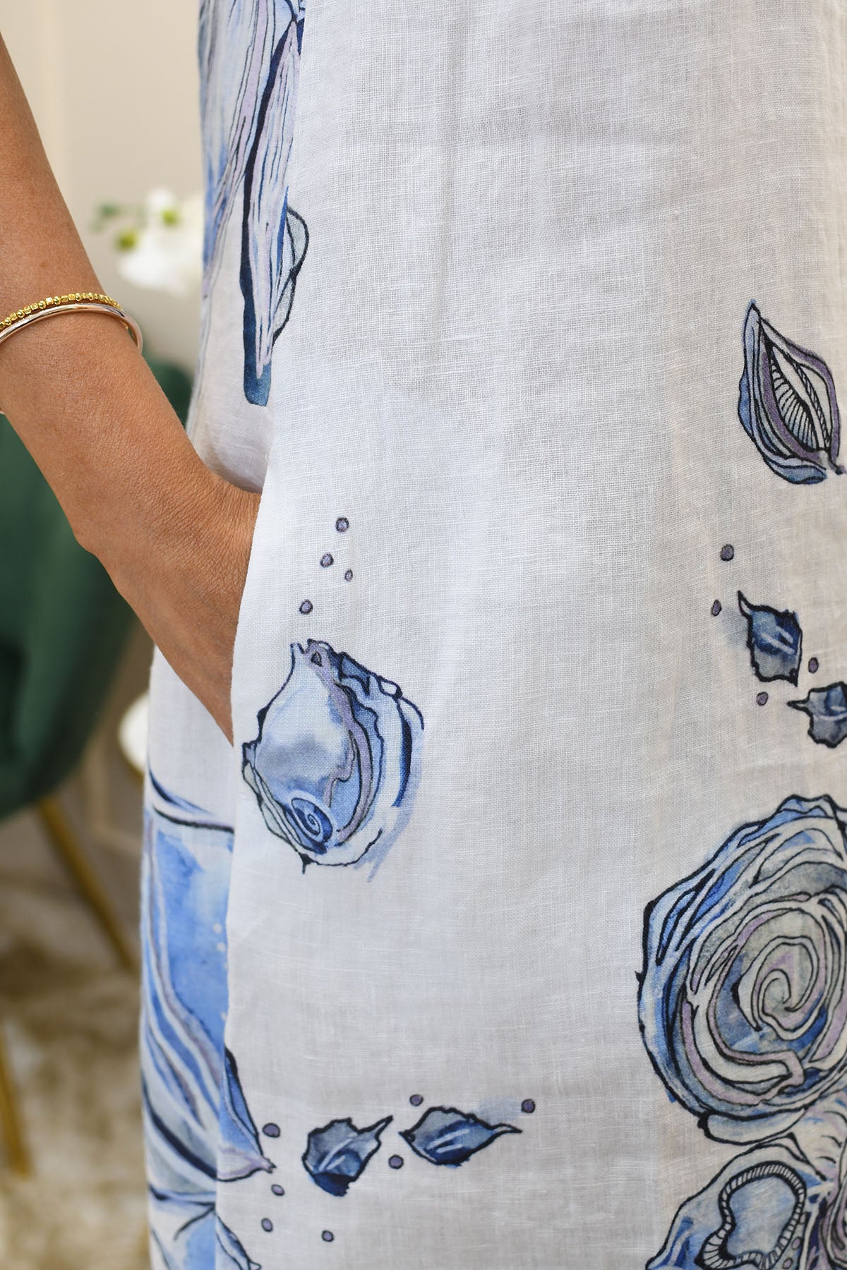 Embrace effortless elegance with this blue “Blue Flowers” linen dress, designed to combine artistic expression with breathable comfort. Crafted from 100% linen, it offers a lightweight, airy feel that keeps you cool and comfortable during warmer days. The striking blue floral artwork creates a sophisticated statement, while the flattering silhouette ensures easy, relaxed wear. Naturally breathable and beautifully textured, this dress is perfect for both casual daytime styling and more polished summer occasions. Pair with sandals or wedges for versatile seasonal looks.